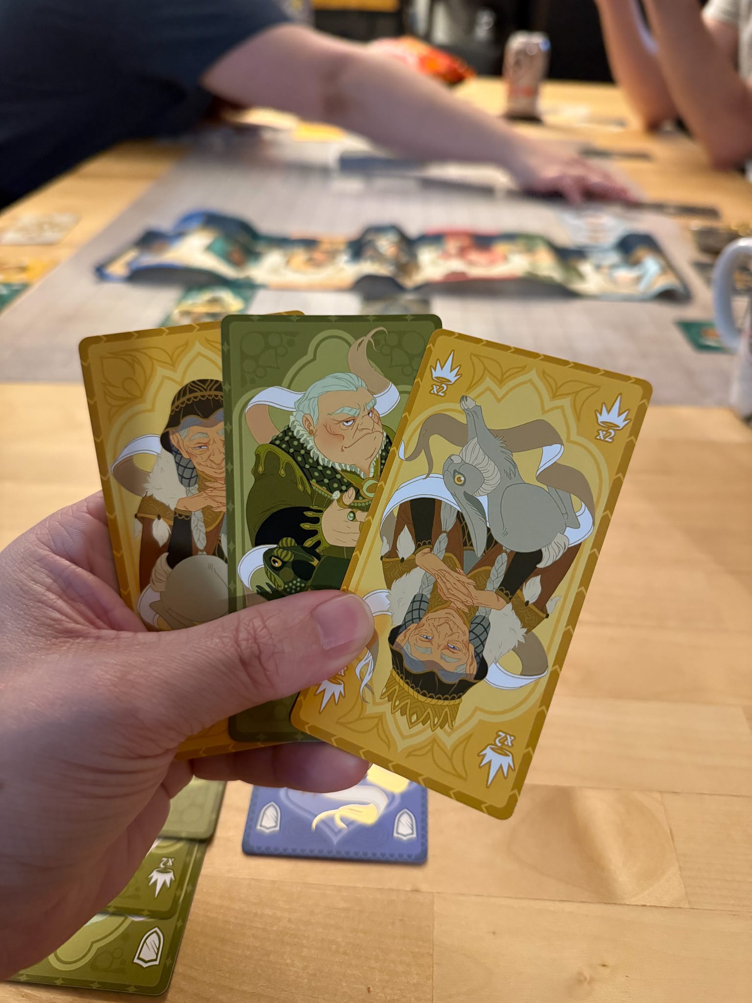 This game is really simple to learn, and once mastered, the complexity and strategies a player can employ are endless. You’ll find yourself peeking at other player’s domains, in an attempt to figure out their strategy, and how it’ll affect you. And this game rewards you for taking action, especially encouraging mean or risky behaviors. Sometimes, you have to give a card to a friend to knock down their score, or use an assassin to take out their favorite family. Luckily, the charm of the game keeps the tone from being too mean. Gameplay lasted around 45 minutes for our first time, then a solid 25 for the second, making this a perfect game to slide into a game night or between larger games. I look forward to taking this game on the road and playing it with friends and colleagues.
