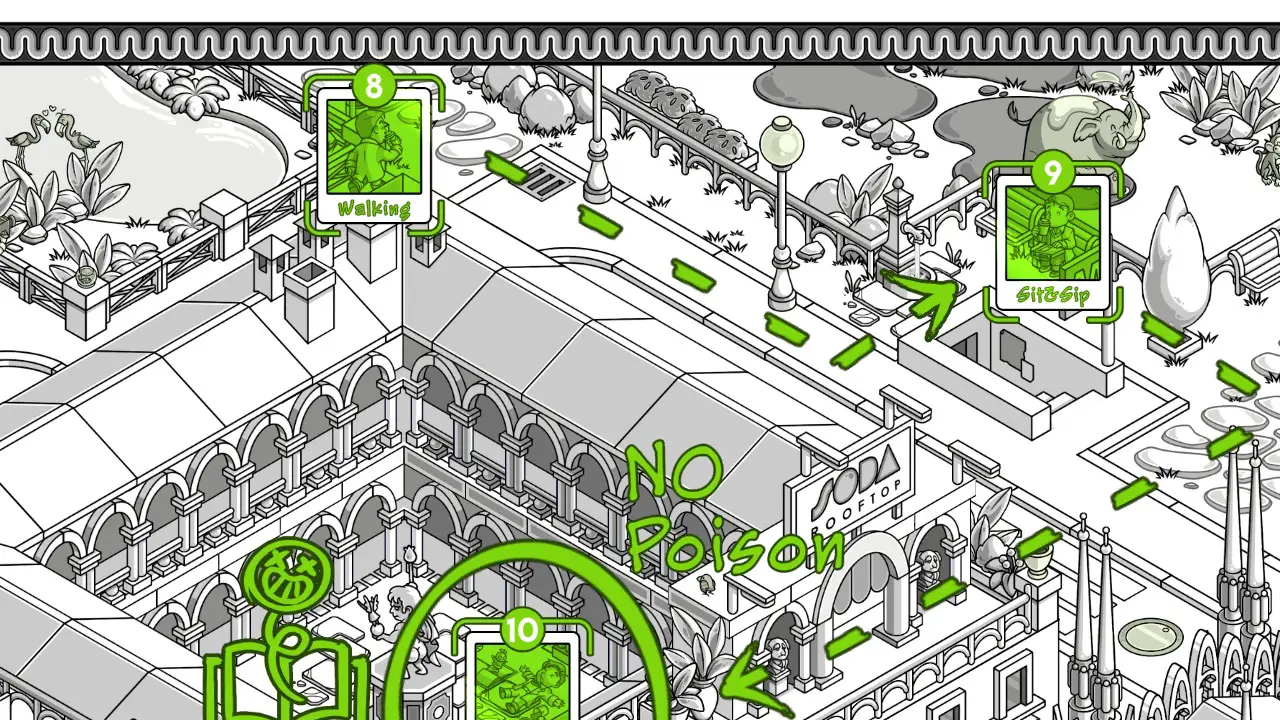 Most of the missions involve locating a character hidden somewhere within the map, and then retracing their positions to locate clues about a crime. This is where the main mechanic of time travel comes into play, with each level having ten “ticks” to traverse. Each tick moves time forward or backwards, meaning that the people and items in the map will shift around as well. This is a fun gimmick, and it was amusing to see just how much detail was put into every single character on the map, with nearly everything moving between ticks.