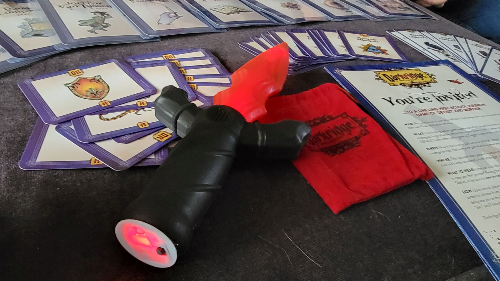 I can say whole heartedly that I laughed crazy hard while playing Darkridge Reunion. The components were and still are very awesome. From the foam dagger that lights up, to the plastic badge/lanyards for every player to the decidedly nice quality of cards, lest we not forget a foam insert that keeps all of this together. Lastly, getting to roleplay characters that in a million years I would and could never dream of being or have been in high school has been a good amount of fun and keeps things interesting as people often find players doing the unexpected while playing this game.