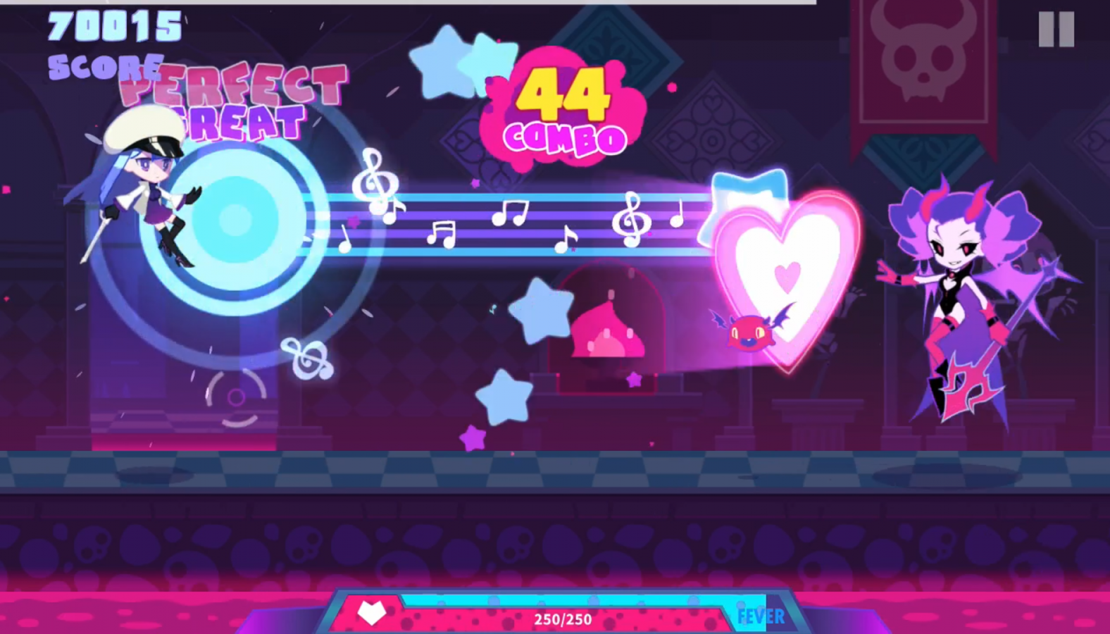 The game comes with a bunch of songs, separated into a plethora of categories. You have the standard tab with your starter songs and other songs that get unlocked from leveling up (more on that later), along with other tabs that have every song under their sections unlocked. You get a good mix of upbeat, tense, unsettling, and frenzy-inducing songs, and every part of me loves that. I never fully knew what to expect going into each song, but I never finished a song with even an ounce of disappointment. I have to admit that Alice in Misanthrope was easily my favorite song that I’ve played so far. Something about the fast pace mixed with the eerie yet familiar tone gave me chills.