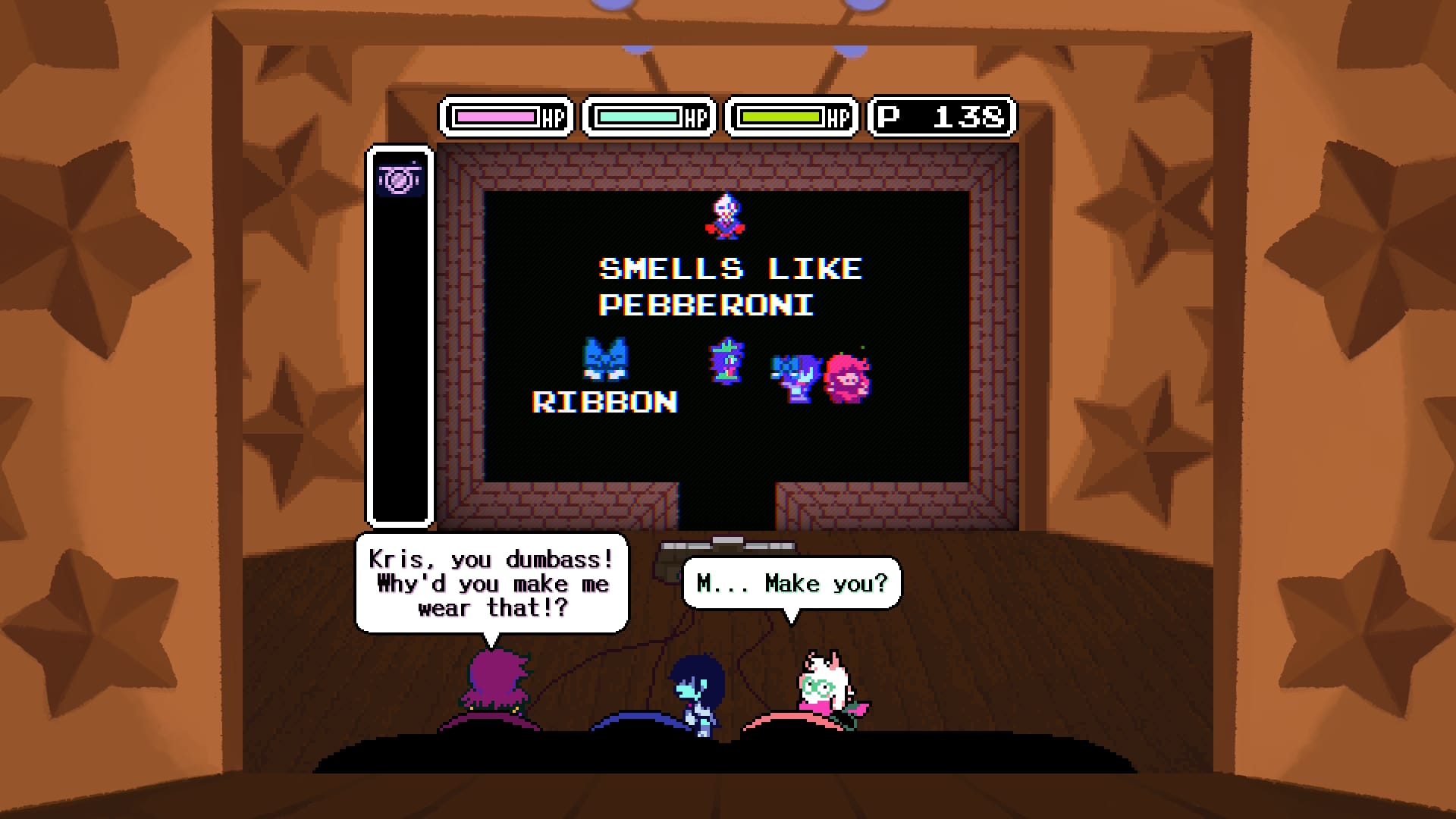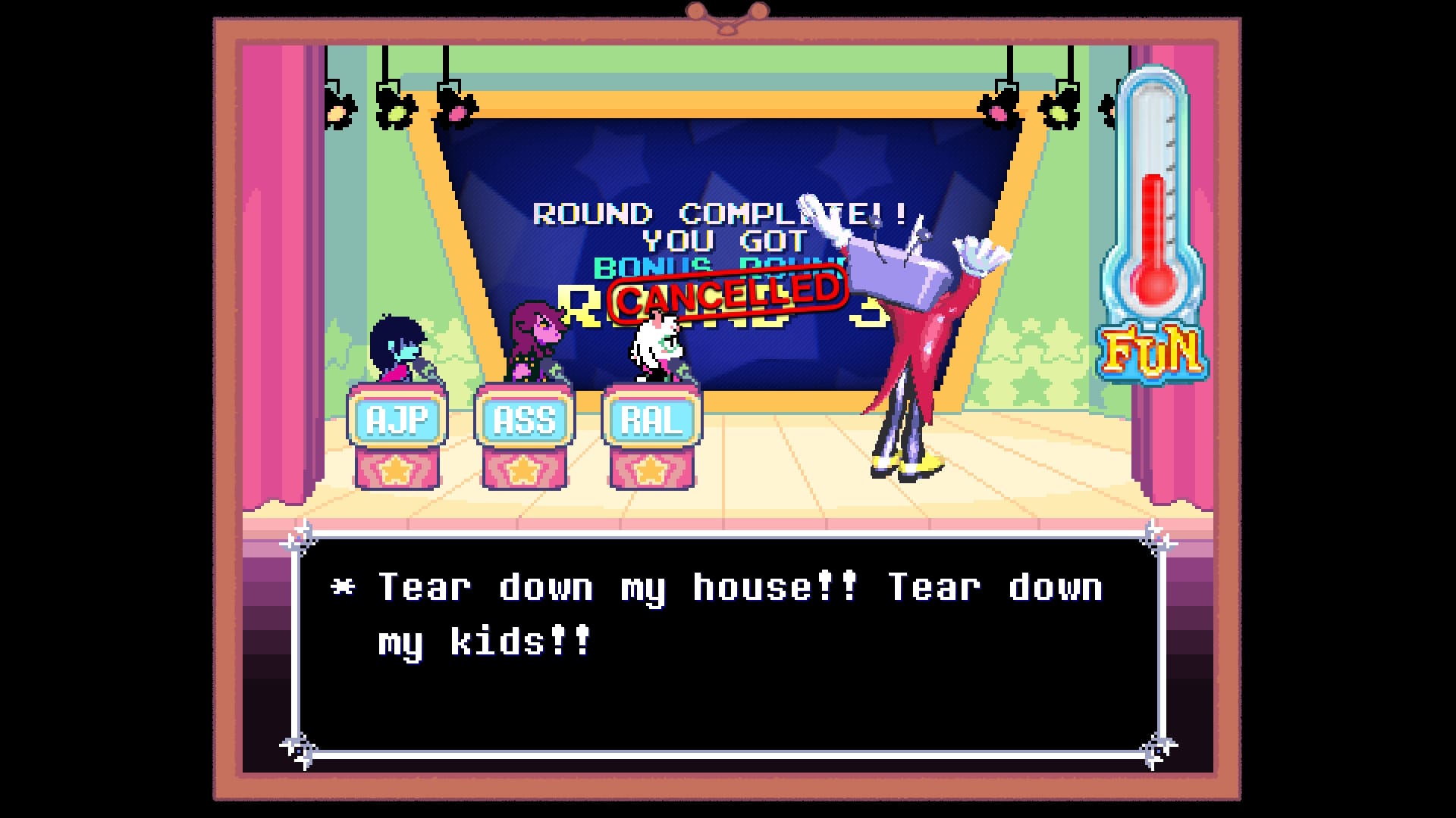 It’s the bedrock of what makes Deltarune “Deltarune” – persisting in its identity as a living, breathing video game, analyzing the human condition’s relationship to our favorite hobby with the same reverence in entertaining and engaging us with in-jokes, homages and shitpost memes. Gradually constructing the Jenga puzzle of a decade-old Undertale crackship? Check. Ralsei’s non-consensual plushie intruding upon Tenna’s big show? Check. Blink-and-you’ll-miss-it EarthBound references? Keep your ears open.