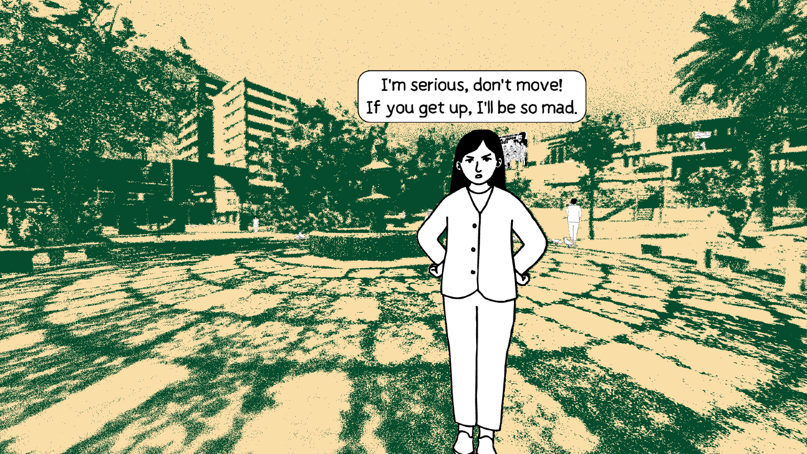 Julián is your typical kid whose focus is entirely football, you spend brief moments of time in school and in a video store, but Julian always finds a way to kick a ball around. He often meets up with his friends to simply kick a ball around in a circle in the neighborhood or park whilst chatting about silly shenanigans or commenting on what’s happening around them. Often, he gets into trouble for not looking after his little sister, or promising his mother that he’ll sit on the bench and wait for her so he can sneak away and go play football. It’s mundane, but it’s supposed to be and there’s a child-like peace in simply kicking a ball around.