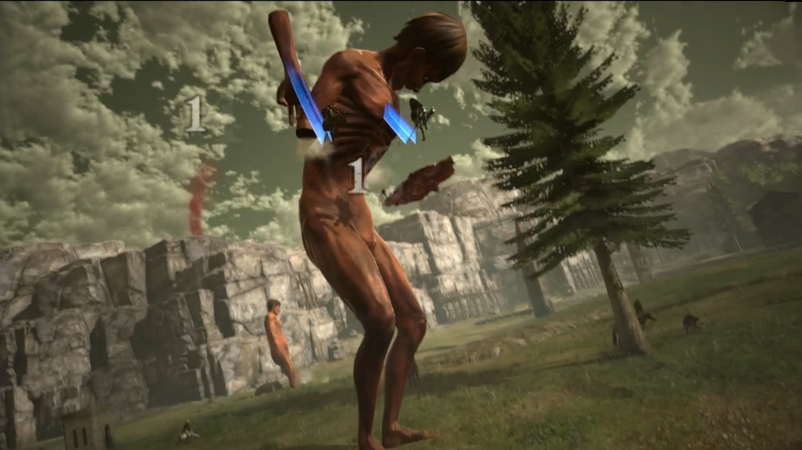 As anyone who’s familiar with the series knows, the only way to kill a Titan is by slicing through the nape of its neck. The same thing rings true here. Thankfully, you must lock onto your target before attacking, which helps your aim quite a bit. That doesn’t mean that you’ll get a perfect hit every time. You’ll still need to manuever your character accordingly in order to get the right angle and get a clean strike. Sometimes it’s to correct a bad angle, and other times it’s to adjust for a Titan turning around and attacking. It should be stated that Titans won’t always go down from one slice to the nape. The smaller ones will likely die, but the bigger they are, the more damage you’ll need to do in order to kill them. Each body part on a Titan, including the nape, has a health bar, so it’s pretty easy to keep track of how successful your attacks are. Speaking of, you can work on dismembering Titans in order to gain extra materials from them or even just to make it easier to go for the nape.