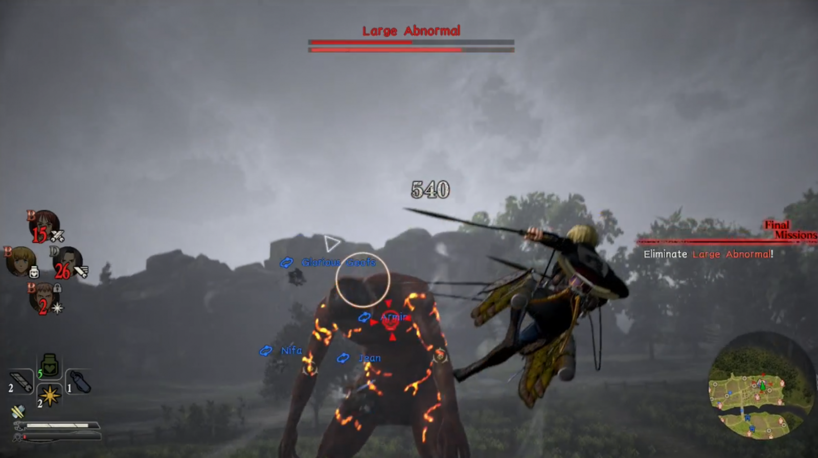 The game looks pretty good, the movement is fluid, and the combat is pretty entertaining. The sound design fits the tone of the A.O.T. world very well, from the soundtrack to the combat noises. I didn’t expect the game audio to be Japanese voices with English dub, but that wasn’t a big deal. For someone who has watched the show on Toonami with English voice actors, not getting the English voices was a bit of a bummer and disconnect, but the decision is understandable. When you’ve gotten used to something a certain way, it ends up being sort of jarring experiencing it in a different way. Again, not a bad thing, but something that should be pointed out nonetheless. Going back to the gameplay, even though I’ve had a great time playing the game, I have to admit that it does get a bit repetitive after playing for a few hours. I’d recommend taking plenty of breaks in order to avoid getting burnt out on the game because it is a fantastic time to be had for Attack on Titan fans. With several enjoyable modes, there’s plenty to do and keep you occupied for quite some time.