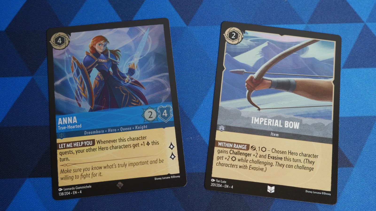 The disjointed nature of the Frozen deck doesn’t mean it’s bad. Anna, True-Hearted, is a powerful quester that can swing big turns if you can get a lot of cards on the board at once. Rapunzel and Pascal synergize nicely and pack a punch if your opponent wants to get rid of them. The Imperial Bow stands out as an amazing item at only 2 cost and provides Challenger +2 and Evasive keywords.