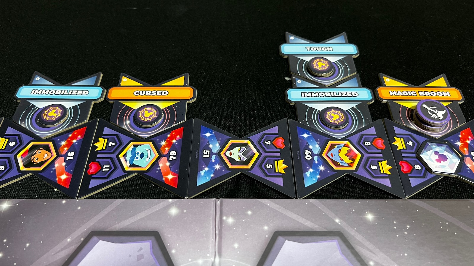 When I downloaded the Disney Sorcerers Arena app a few years ago, I had a ton of fun taking teams of Disney characters into battle against classic Disney villains. Since I wasn’t willing to buy into the pay to play model, my progress was slow and arduous, but the artwork and fun combos led to a great experience. The only thing better than the app… make it into a board game!