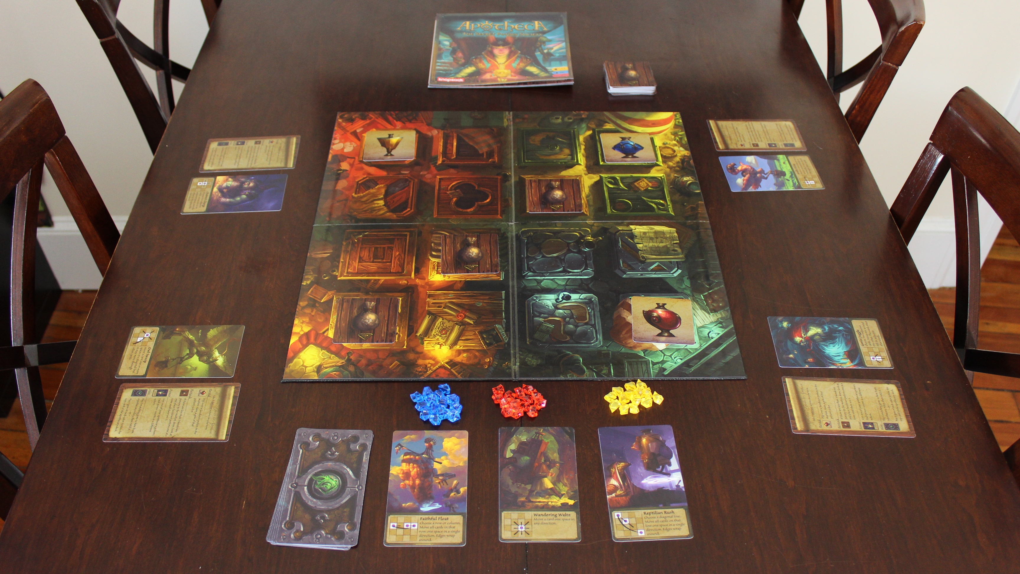 Apotheca supports two to four players, with the four player game being played in teams. After a few games with more than two, I don’t know if can suggest anything other than the straight two player game. With the increase in players, comes a significant increase in chaos. Don’t get me wrong, the two player game is great, however the four player games just ended up feeling very random. Games took about twenty to twenty five minutes to play. I bet if two people knew the game well, they could finish a game in under 15 minutes.