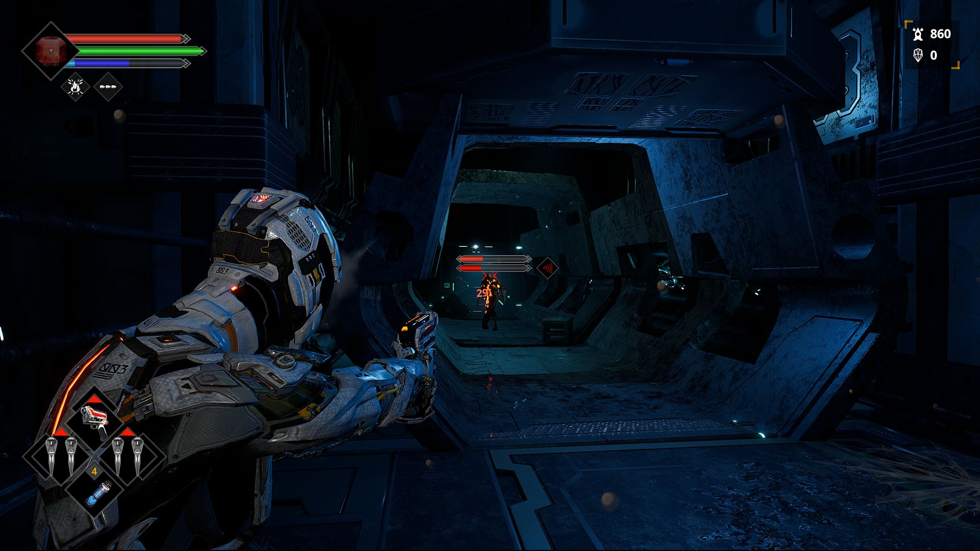 Dolmen is rough around the edges — the game has bugs and glitches, some of the gameplay systems don’t run as smoothly as I would like, and I have spent much of my time playing the game being frustrated. One thing in particular that kept causing me trouble was the target lock feature as it would randomly switch between targets, even targets who were further away instead of those directly in front of me. There were also several times where sound effects were absent, such as when I was shooting a gun or refilling my energy. But for the most part, most of my struggles with Dolmen weren’t due to these issues; they were more from me trying to master a difficult game.