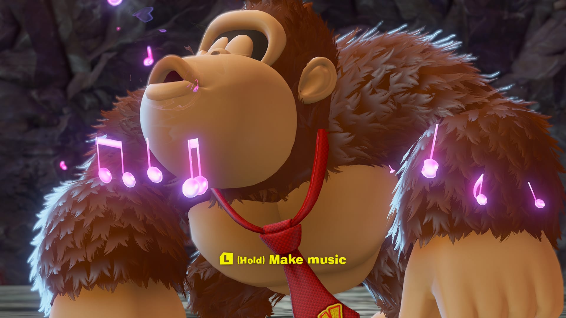 Bananza uses music for a lot of things that other games would use eagles, items, or the map to track. Need to know where you’re going? Use LB to whistle and see where you need to go next. Need to transform into a Bananza form? Hold LB and RB to use DK’s beat and Pauline’s singing to transform. Need to open void gates or get through void tunnels? Use Pauline’s singing to break those open. DK has always had iconic music; it was smart of Bananza to really hone in on music as a centerpiece of his character.