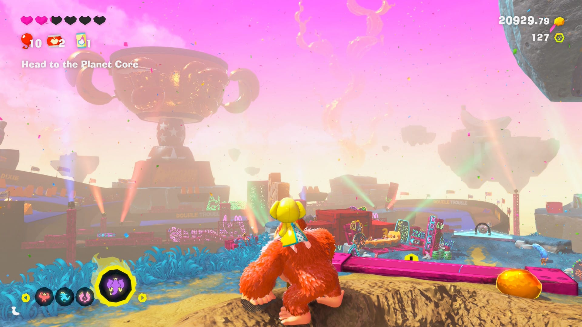The lack of feeling of monotony is a huge plus for Donkey Kong Bananza. Each layer provides just enough to keep things feeling fresh and moving forward. I’m someone who needs collectathons to keep throwing “new” at me, or I get bored. Banjo-Kazooie was always my peak example of perfect Collectathon, as you always had something new to learn up until the end, and every world felt completely different. Bananza does this very well, with you learning new ways to use your powers up until the very end.