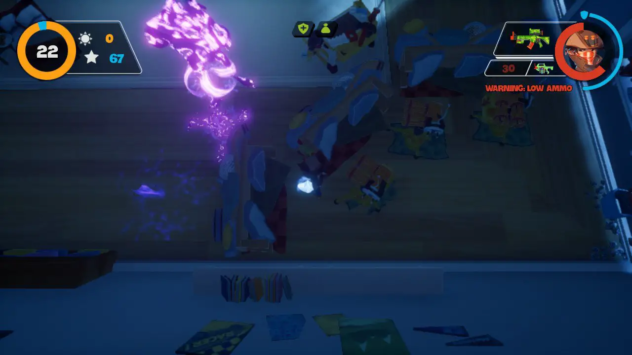 Not every kid is available at the start and must be unlocked through a set of requirements (such as surviving a set amount of nights in a single run or beating extra tough enemies with each gun). In addition, each kid has special powers and difficulties (such as equipping a helpful weapon at the start of the game or making more power-ups effective), so using them based on playstyle is encouraged. They come with different voice lines and personalities, and while this dialogue will repeat itself frequently, there’s enough here to flesh them out and make them distinctly different.