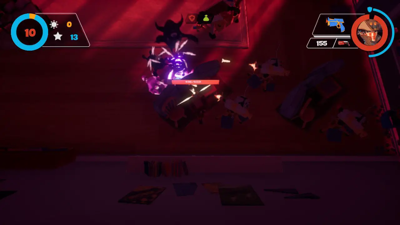 Sleep Tight lets you control a group of kids as they battle the creatures of the night using an assortment of family-friendly firearms. Your venue is a square children’s playroom, which doubles as an arena when the baddies come out at night. You select one kid and try to survive for as long as possible with the help of weapons and walls. During the day phase, you’ll spend suns (which is currency granted automatically each day) and stars (which is currency earned for shooting monsters) to build structures and research power-ups that will help you during the night phase. During the latter, you’ll have to take advantage of the twin-stick shooter mechanics and run away from various monsters while making sure your health doesn’t drop to zero. If you do end up succumbing to the monsters, you’ll get a score tally as well as a grade performance based on how well you did.