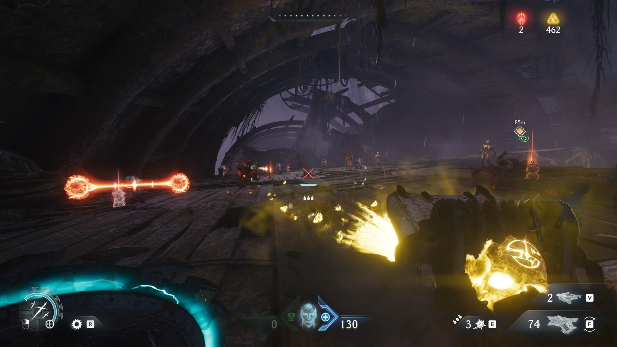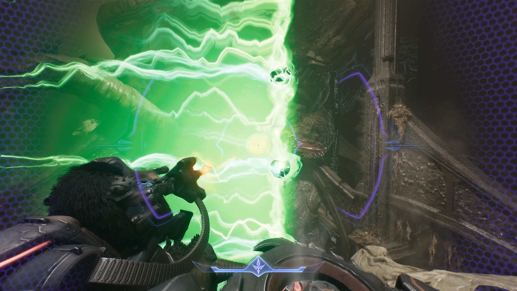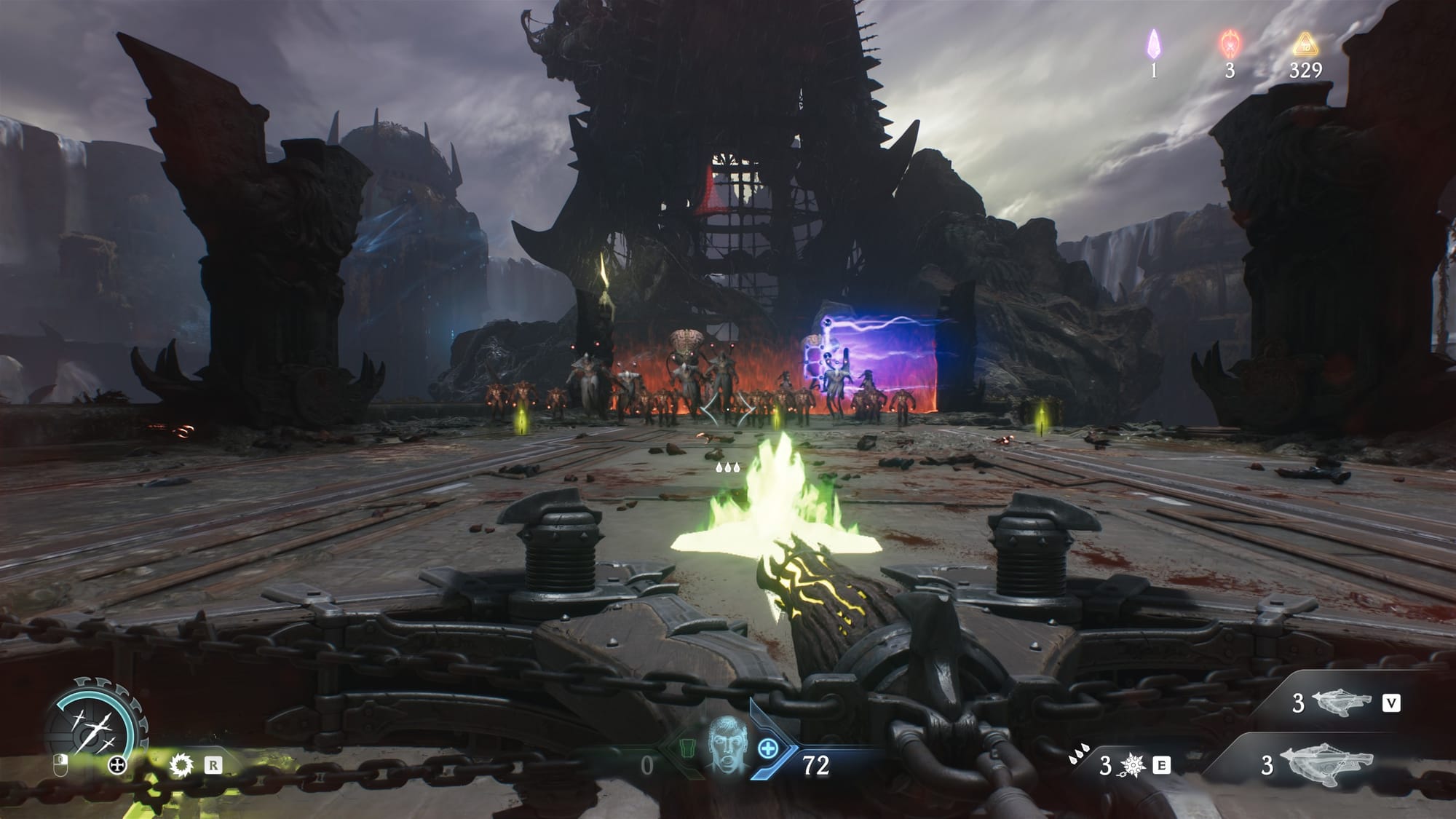Aside from those issues, The Dark Ages is a blast. Sometimes literally, with certain weapons. The game provides a great arsenal of twelve weapons you unlock over the course of the game. There are six weapon types, with each having two guns associated with them (except for one, which is weird). You can swap between them whenever you wish, but guns in the same class will share ammo. Each gun has its use, though it does feel like there’s a lot of overlap between them. For example, the Shredder and Accelerator are both rapid fire weapons, but they do set themselves apart through the upgrade system.