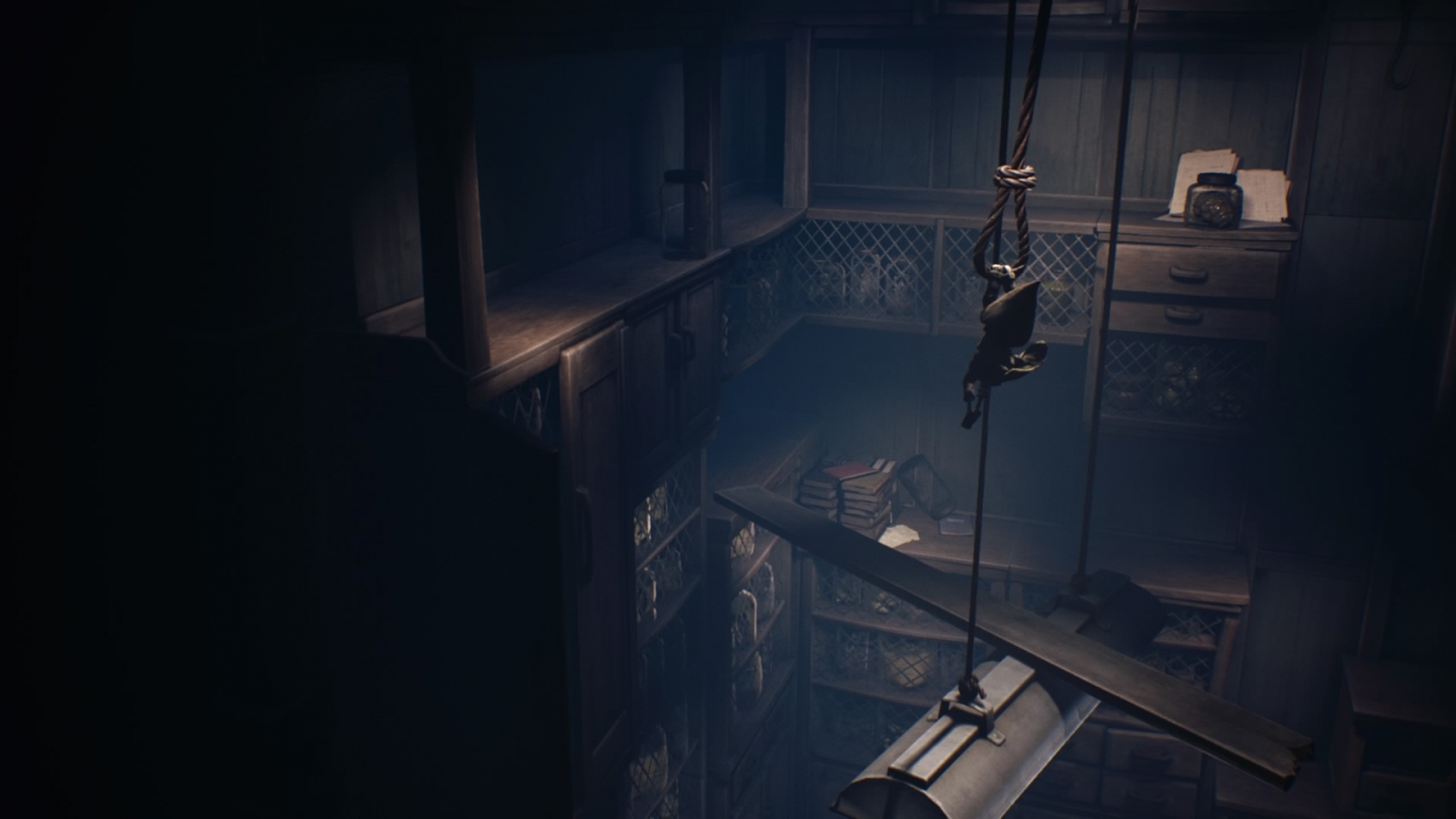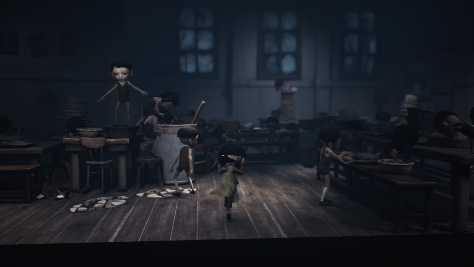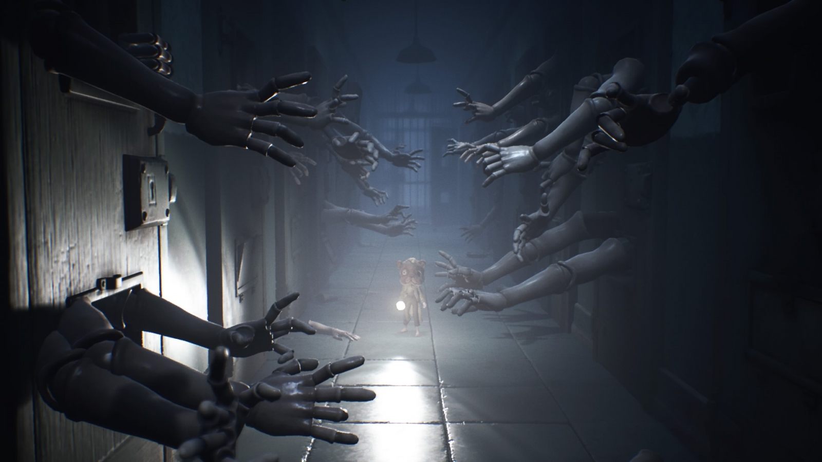 How the game frames every beat of the adventure is the secret to its moody atmosphere and unsettling horror. The bulk of the Pale City is bathed in a ghastly blue fog and a heavy helping of film grain. The odd light source punctuates the environment, illuminating hints and horrors alike. Little Nightmares II keeps music to a minimum to let its outstanding, otherworldly sound design complement its eerie visual imagery. The droning ambience fades in and out at opportune times in tandem with heart beat-like pulsing to highlight the suspense, and make room for creaks and groans that never failed to send me into a panic. Not a second of the experience is spared this treatment; there’s always something to admire every step of the way.