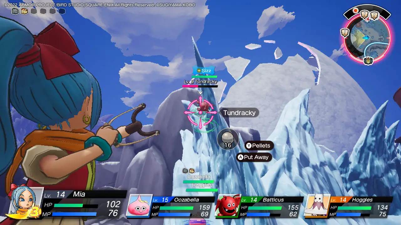 Playing as Erik or Mia (I went with Mia most of the adventure because of her fate come DQXI), you have a few moves at your disposal. You can do a melee combo by mashing Y, dodge by tapping X, heal yourself by holding X, jump with B, sneak by pressing in the left stick, and aim and shoot pellets that can damage foes and heal allies with ZR. While your dagger can deal quick damage on its own, most of the fighting will be done by your recruitable monster pals. After beating a monster senseless, there’s a chance that they will apply to join your gang (which is a very funny concept), and you can then give them materials to recruit them.