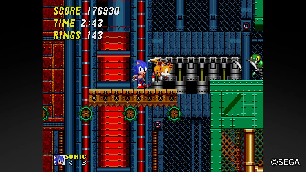 Like in other 2D Sonic games, you’ll speedily make your way through each zone while carefully managing tricky jumps, avoiding spike traps, and other obstacles. Most zones consist of two acts, the second of which ending with a battle against Dr. Eggman. The quality of these zones can vary in quality, for example Emerald Hill, Chemical Plant, and Casino Night can all be very fun to run through with many areas to reach your top speed, while Oil Ocean and Metropolis have tons of traps and cheap enemy placements that you can’t see coming. This brings us to the first oddity in this enhanced port: no widescreen support. You can stretch out the 4:9 image to fill the screen (which I find oddly nostalgic), but there is no option for true widescreen. The mobile ports have this feature, so why doesn’t this release? Hopefully this can be patched in later, but I doubt that will happen.