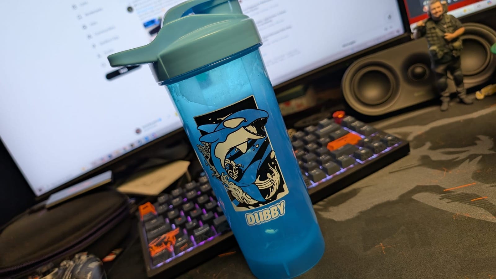 I prefer to take a whiff of my powder and the drink to see if I can make out what it is before the eventual first sip. Compared to the other drinks I’ve mixed up, in powder form it’s not recognizable, and mixed up only slightly. My first taste of Dubby was one of surprise, and mainly due to not knowing what to expect. The easiest comparable drink is G FUEL, with a similar texture and mix. It can be a bit powdery in taste – and my preference would be for it to be a little smoother – but it’s something you adjust to as you drink it.