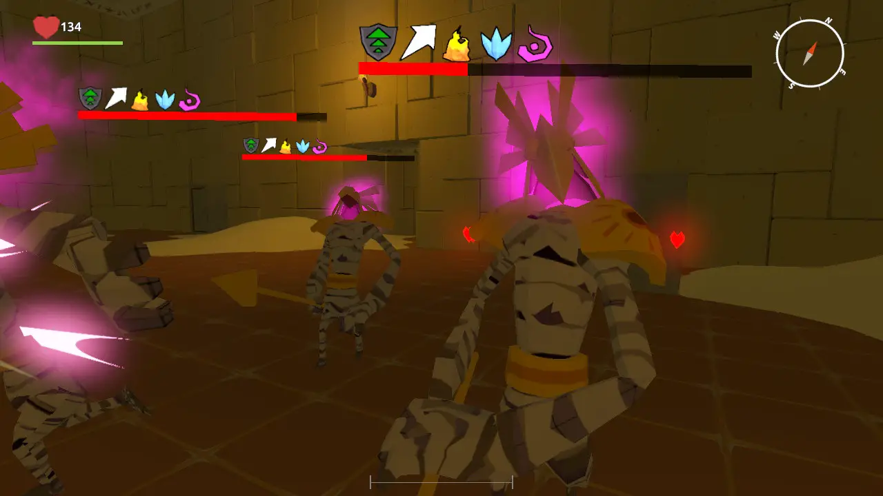 When you’re not reading stilted dialogue from an army of dolls, Windscape takes Ida through a number of uninspired environments to complete repetitive quests. You’ll travel through the likes of the generic forest, the creepy crypt, the Egyptian tomb from a low-budget haunted house, the lava level, and the ice level. The game occasionally snuck in an unexpectedly beautiful vista, like its stark snowfields and the eerie effect of seeing a distant town through a sandstorm, but there’s just not much detail to anything, and I mean that in terms of design rather than graphics. I’m actually a big fan of lo-fi graphics, but in this case, it seems like less of an aesthetic choice than a technical limitation. Low-poly worlds can be beautiful, but only if they’re built to be that way. The only part of its aesthetic that worked for me at all was the music, which was charmingly old-school and corny, like battle music from a PS1 RPG.