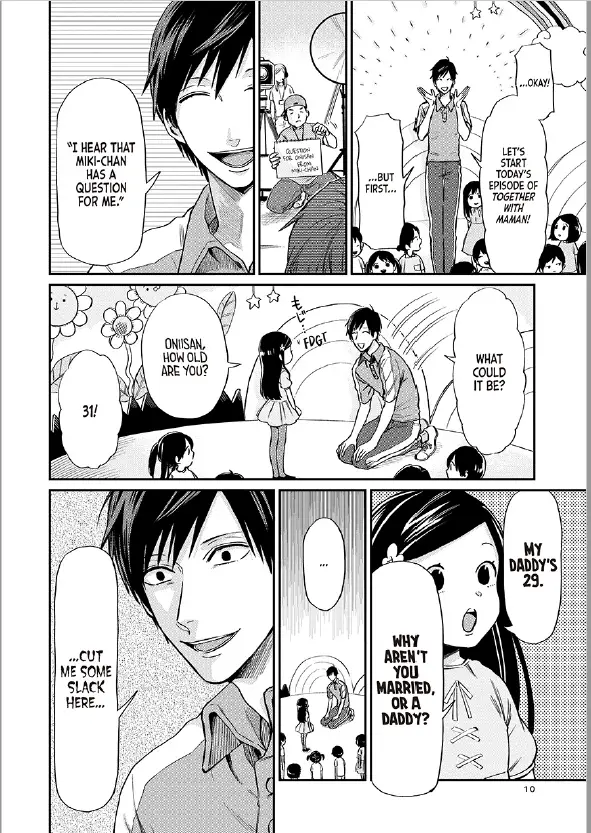 Well, actually it is! You see, Uramichi Omota is in fact an adult that’s saddled with the crushing weight of responsibility, and takes every opportunity to remind the kids on set that yes, life sucks. That said, the children go along with it like nothing’s wrong, and even take him down a peg or two with their innocently brutal questions. The first chapter alone has a kid ask Uramichi why he’s single at 31 while her father is 29 and married.