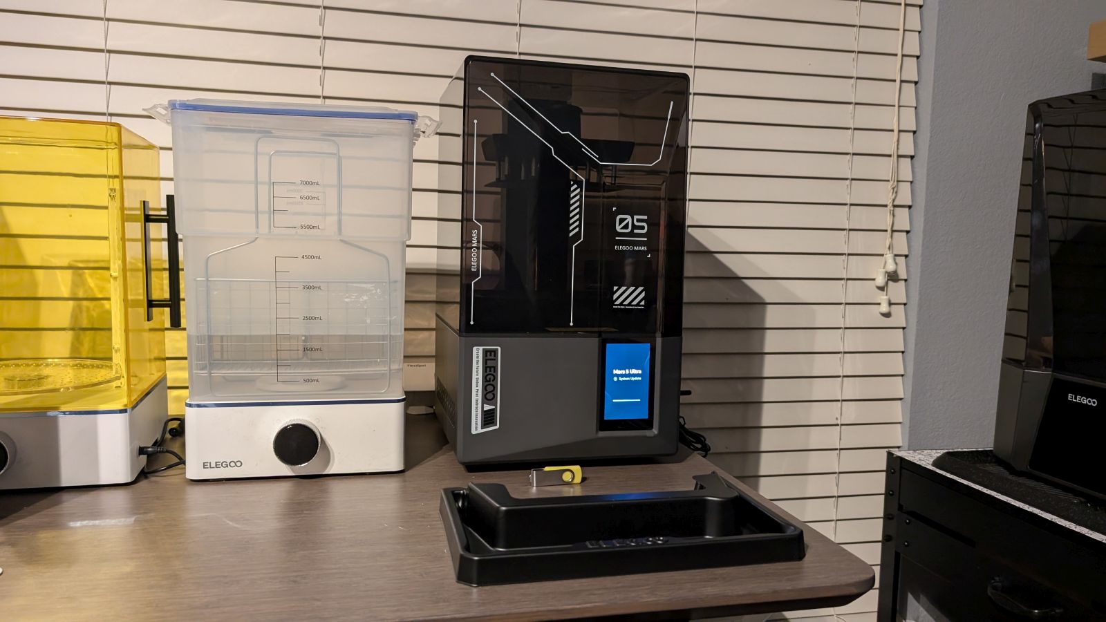 There is one small concession in making this smaller version, other than the plate – you lose the USB support for an air scrubber. Yes, the case has a port to use with the Elegoo Mars Mate air purifier (you can read our review right here), if that’s a concern or if you are printing without an adequate air vent. The smaller vat gives off a lot less smell so it might not even be a concern, but that’s an individual concern you’ll need to solve for yourself.