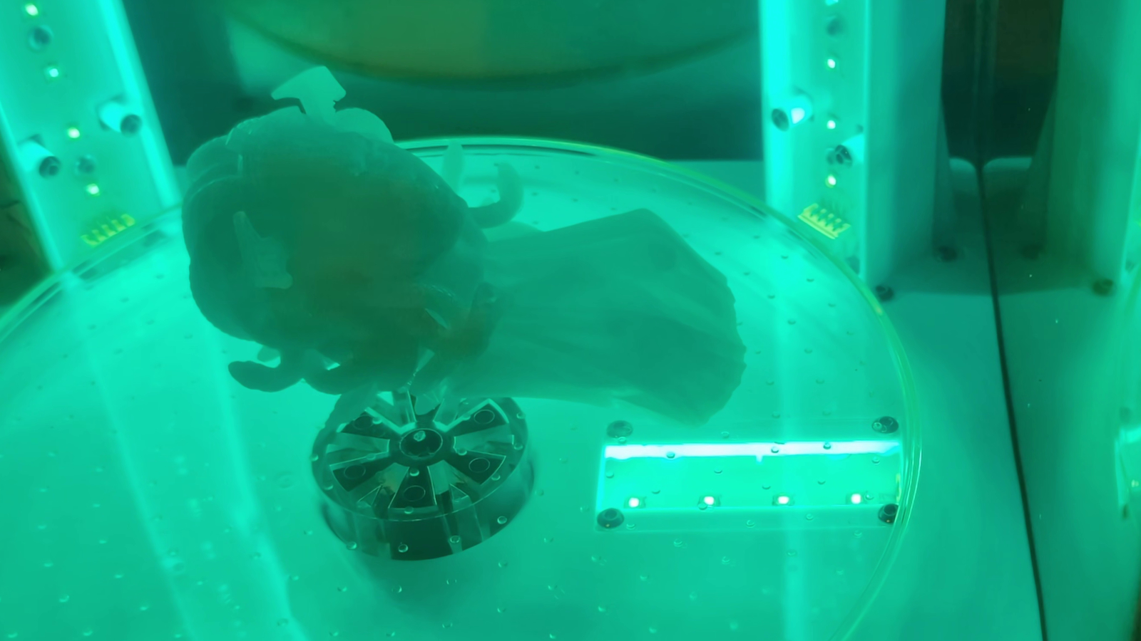 The cure station has a pair of towers you’ll attach to the rear corners of the cure base with the included wrench and screws. These towers have a prismatic lens on them to help spread the light from the 14 UV LEDs on each side evenly across the print, operating at 405nm. On the bottom of the base is another set of 4 UV LEDs shining upwards into the underside of your print to cure inside. The clear plastic plate rotates around to give a 360 degree spin through the UV light to ensure the entire model is cured and safe.
