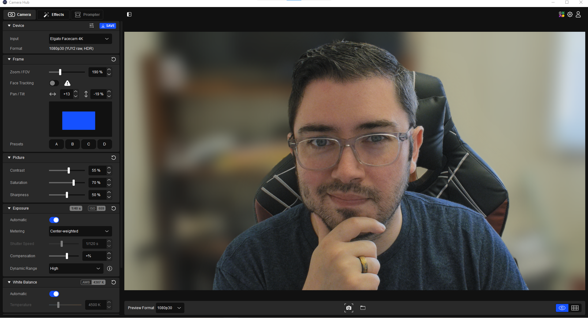 The most impressive thing about Elgato’s devices is their plug-and-play nature and ease of use. That continues with the Facecam 4K. I’d never call myself a savant when it comes to cameras, and I don’t have the time to try. The great thing about Elgato’s Facecam 4K and the software is that I don’t have to be, with Elgato doing all the hard work for me.