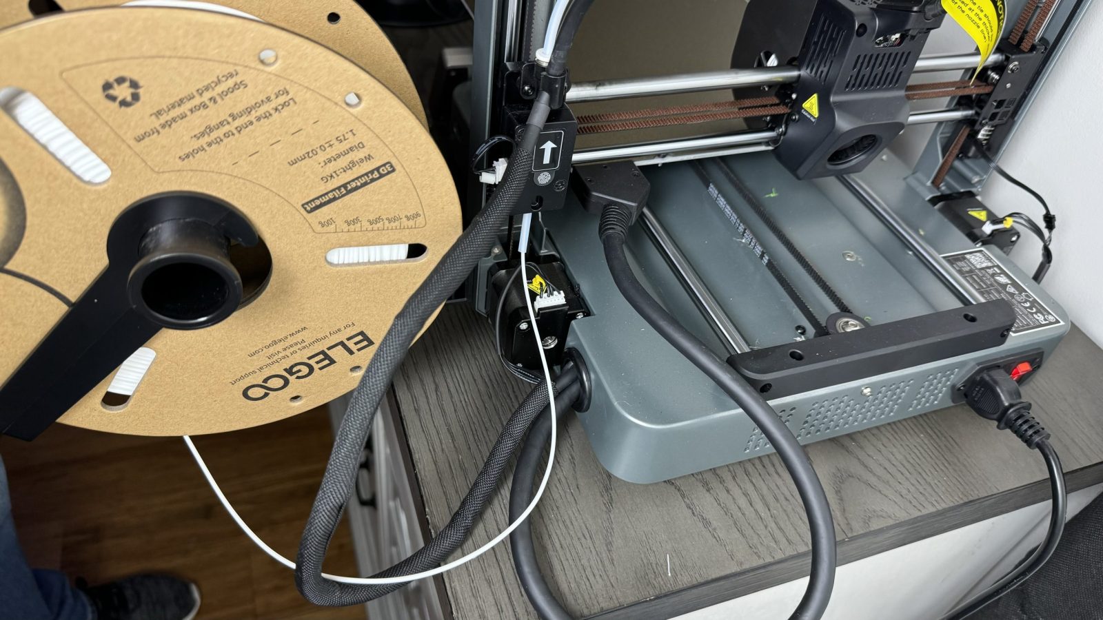 I also intentionally let the filament run out to test the runout and resume features. The printer did a clean pause and waited patiently for hours for me to come back and pop on a new roll. Here is where I hit my first negative. If you don’t straighten out the new filament just right, it’s a fight to get it through the runout sensor. Any curve and it’s going to get stuck inside. This is easy to fix by taking a second to straighten the end out but is frustrating if you’re not aware. Once you get the new filament in though, the screen has built-in filament change commands that will retract the old filament and then load the new one. You need to correctly unlock the extruder and remove the tube to feed in the new line and then lock it back up properly but it’s not hard at all. Then just resume the print and it continues like nothing happened.