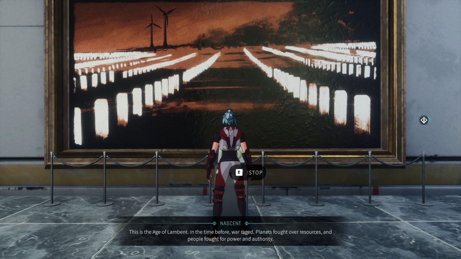 Now that I’ve covered the basics of the plot, morality system, aesthetics, and gameplay, I’d like to go into a little more depth and explain how they tie together. I won’t spoil too much, but if you’re a purist for spoilers then skip to the next paragraph. I would say that the overarching story is good. It’s got decent complexity and nothing is as straightforward as it seems. I do, however, have a few minor gripes with the world-building and tone. The world-building can feel a little undercooked, which makes the setting lack that “lived-in” feel. Your best bet to get some perspective on people’s lives and thoughts is to read the notes scattered around the open levels. These shortcomings mean that most of the characters never get fleshed out, so when it’s their moment to shine, the story beat falls a little flat. A lot of momentum was lost in what were supposed to be high-stakes moments because of this. By the end, I had plenty of questions that were left unanswered. How did the Nascent die? How do people outside of the Forgotten Suns feel about Helios? What is Ereban culture like? They pointed to the fact that biological parts are being integrated into Syms, but it leads nowhere, what’s up with that? For the most part, we get only glimpses of the answers at best. Honestly, most of the lore feels front-loaded into the first mission’s museum, where the game throws a bunch of definitions at you like The Enlightened, The Nascent, Syms, The Age of Lambent.