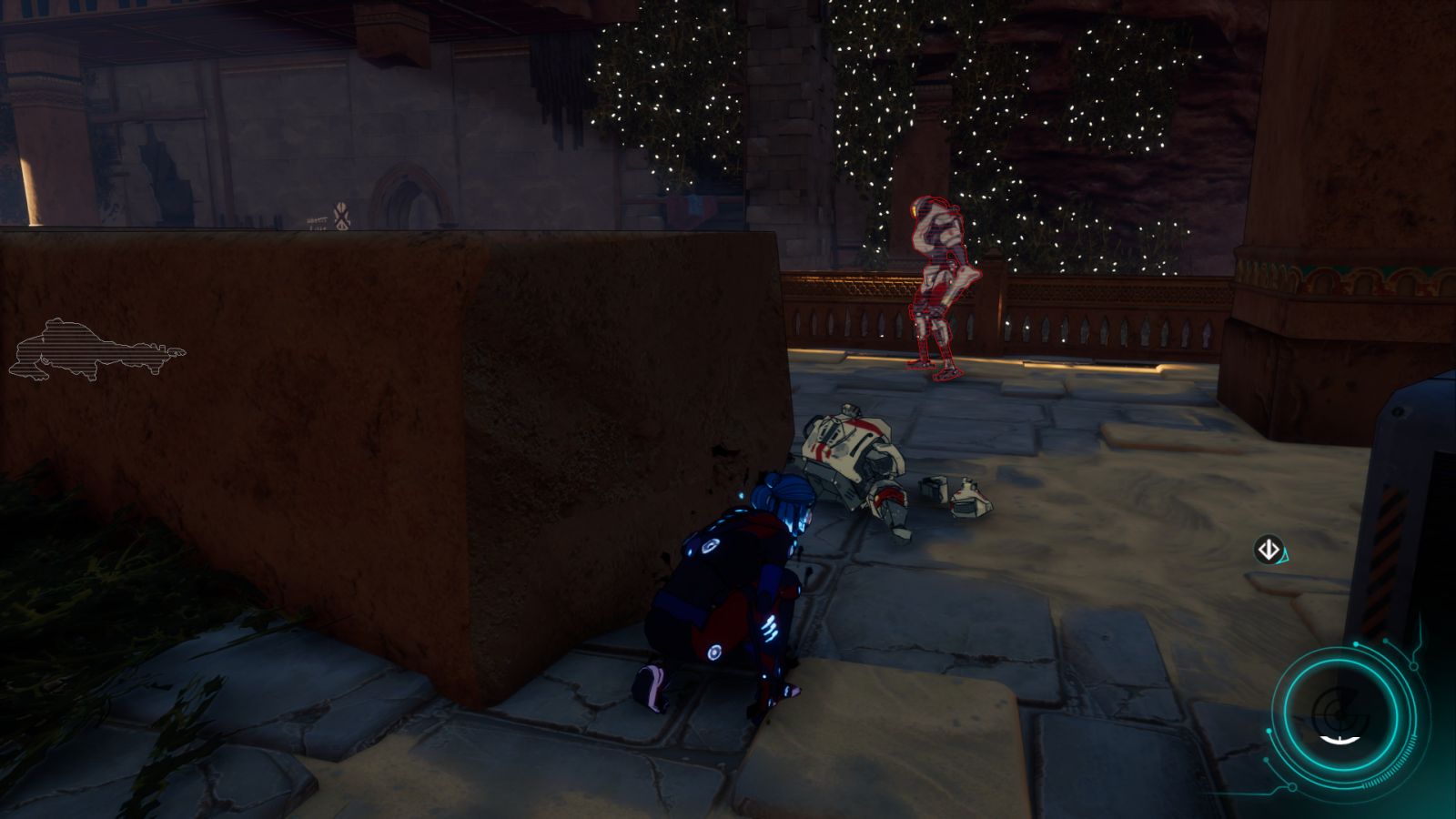 At this point the flags are so red you’d think they’re communist, as it quickly becomes apparent that something is off. Then, The Nascent offers what might just be the world’s most suspect elevator pitch, saying “Hey, we made this handy throwable device to incapacitate your race specifically!” As one could imagine, the relationship rapidly sours and Ayana manages to escape with the help of an eccentric worker with bright red hair. Unfortunately, the ship they used to escape is downed, and Ayana has to find a way to heal the worker who we learn is named Mira, and face down Syms, Helios’ robot enforcers.