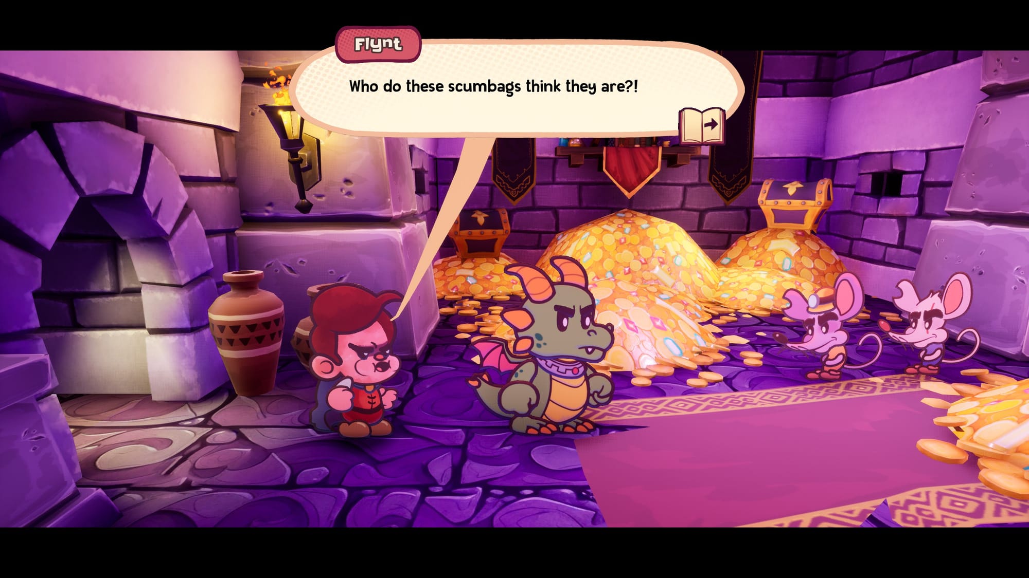 After initially refusing a job with Ever After, Flynt was jailed. There, he begrudgingly joined forces with Tinder to escape the dungeon. Once out, they ultimately accepted employment, intending to be promoted so they could warp to the real world and topple the company.