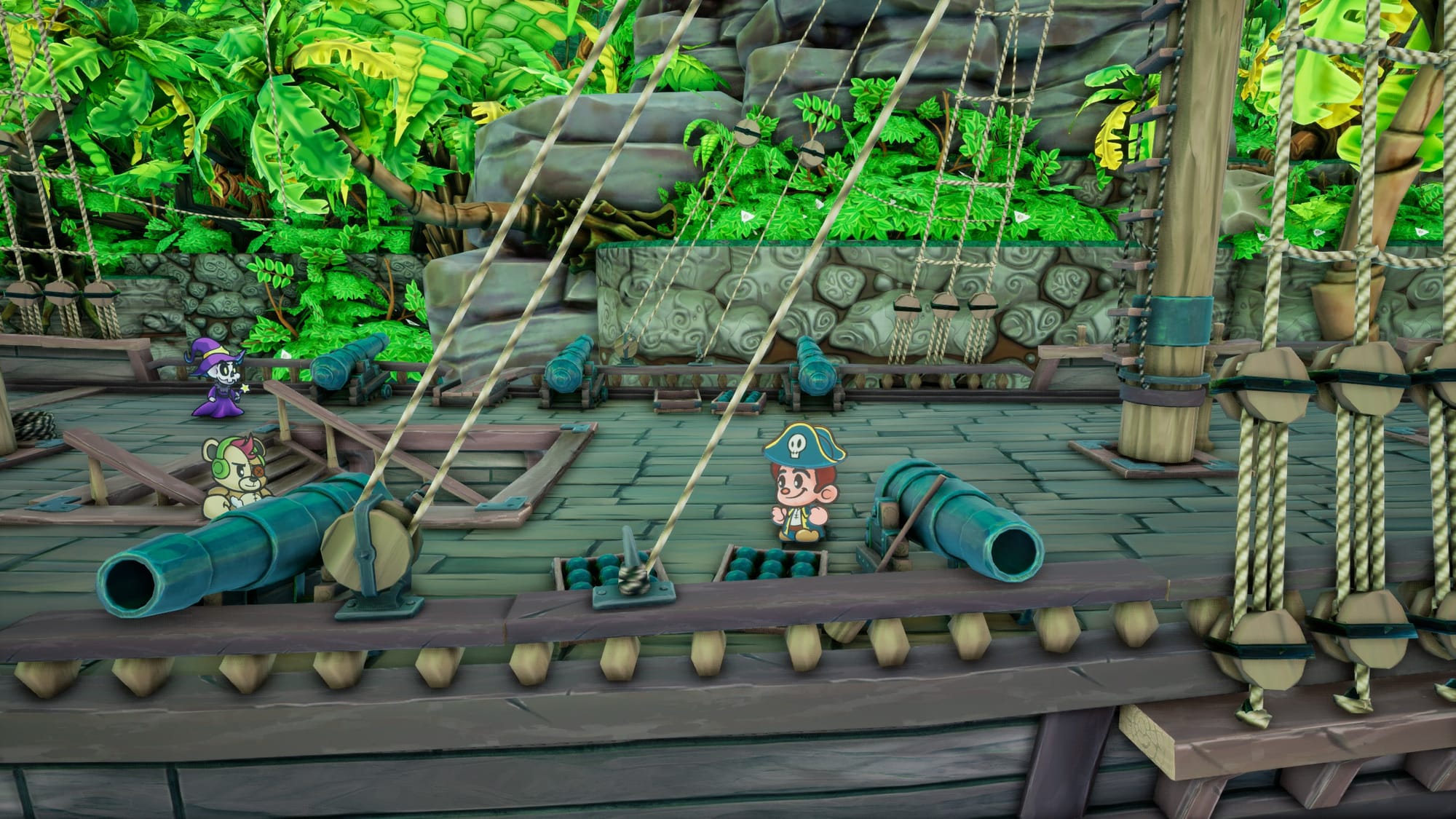 The game’s various environments offer a lot of interaction. The world is three-dimensional, but much of what’s in it is 2-D. The game is full of hidden items to discover, and items can be smartly obscured behind objects. You’ll want to spend time checking those thin nooks and crannies for healing items and upgrades. The game is also full of clever environmental puzzles that require your teammates and some critical thinking to resolve.