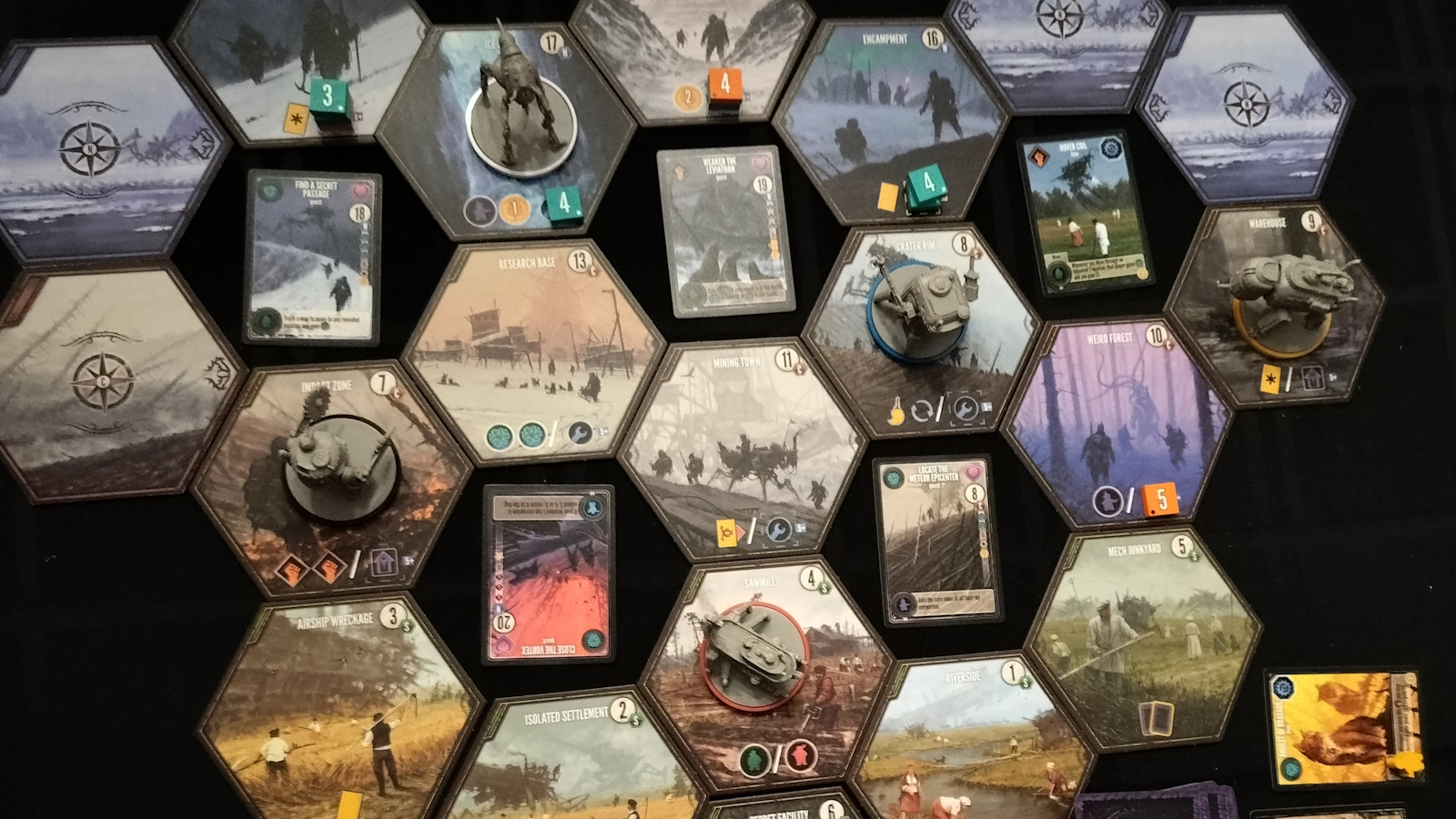 It doesn’t feel like your characters are out there doing anything. They’re mucking about with stuff they don’t understand to make a quick buck. These characters don’t feel like heroes, they feel like opportunists. There isn’t even a fail state for taking on corruption or exploring. Either you have the means to beat it, or you don’t, in which case, you don’t fight it. In Scythe, exploration cards often offered interesting trade-offs, but even that is missing from the mechanics of Expeditions.