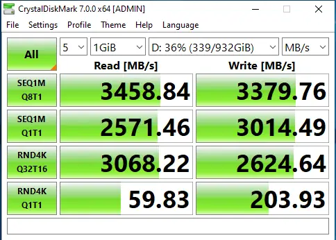 First and foremost, it’s important that you check your specs before you jump on this newest generation of M.2 drives — AMD has the only Gen 4 motherboards as of the time of this review. That said, fret not — a quick test of the 520 on my Intel-based motherboard yielded speeds of 3448 MB/s for read and 3371 MB/s for write, essentially dropping back to Gen 3 speed, with a little extra on top. Still, there is a bit of a price increase between the 510 and 520, so choose accordingly.