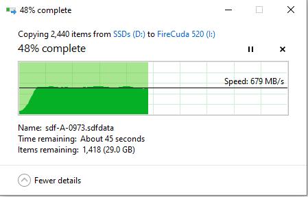 I did a lot of testing on the FireCuda 510 versus SSDs and a 12 TB mechanical drive in my review of that drive (you can read it here), and frankly it is a complete blowout. It’s patently unfair to even compare an M.2 drive with anything else on the market. As such, I’ll be doing comparisons with the 510 and against both synthetic benchmarks and real-world transfers and recent game loads. Let’s get rolling with a head-to-head between the 510 and 520.