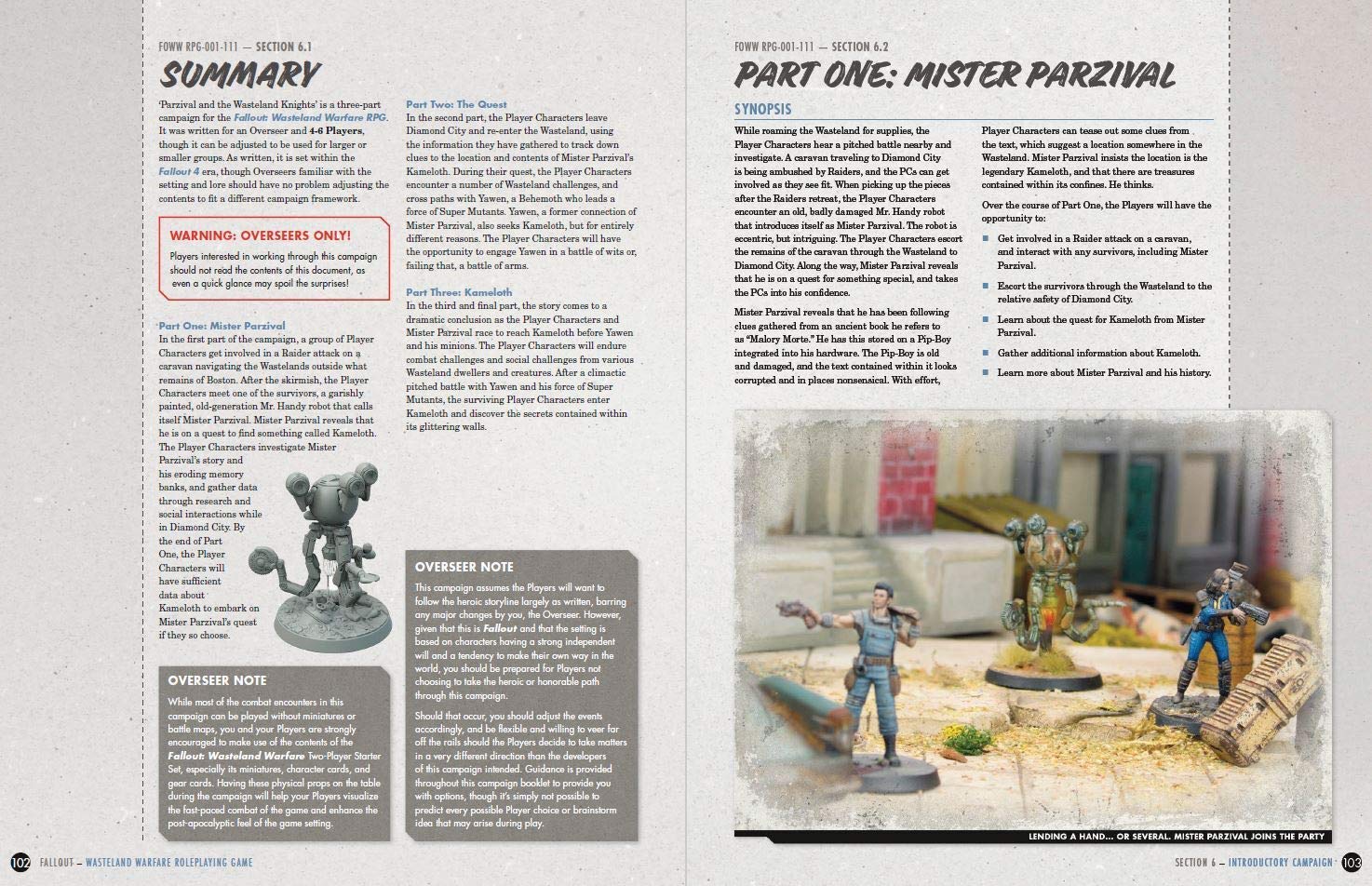 That said, the combat-heavy stage that Fallout Wasteland Warfare RPG sets is quite robust, with interesting mechanics like crafting, chase scenes, and being able to play as a robot. They give you a lot of fodder to work with for creating your own campaigns, although you’ll have to do a lot of heavy lifting if you want to draw outside the lines. The introductory campaign mission, “Parzival and the Wasteland Knights” has a lot of great Fallout charm and is packed with interesting encounters, even if it amounts to little more than a by-the-numbers dungeon crawl.