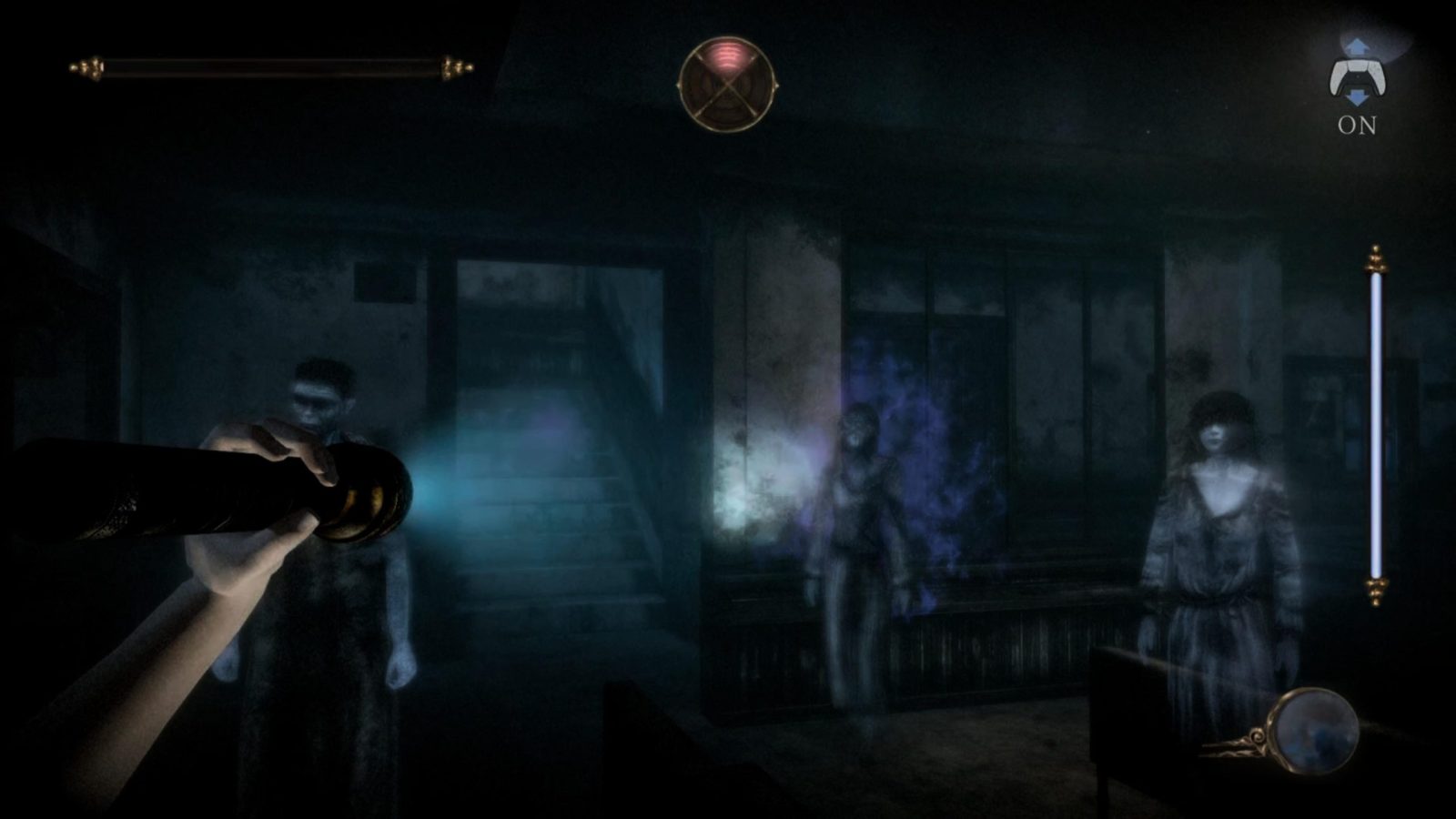 On the other side of the spectrum, controlling the Camera Obscura in first person mode feels quite good. As briefly mentioned before, a gyro option exists and works in tandem with the traditional joystick movement. The gyro can be toggled on or off depending on your preference. Typically, I groan at the prospect of using motion controls to aim, but in this context I didn’t mind it too much. I found that using both traditional aiming and motion controls at the same time allowed me to quickly track ghost movements on the fly, and made defending myself feel surprisingly responsive. Even if I didn’t appreciate the action-oriented sections that I believe this function to stem from, I appreciate that the controls work well for normal play as well.
