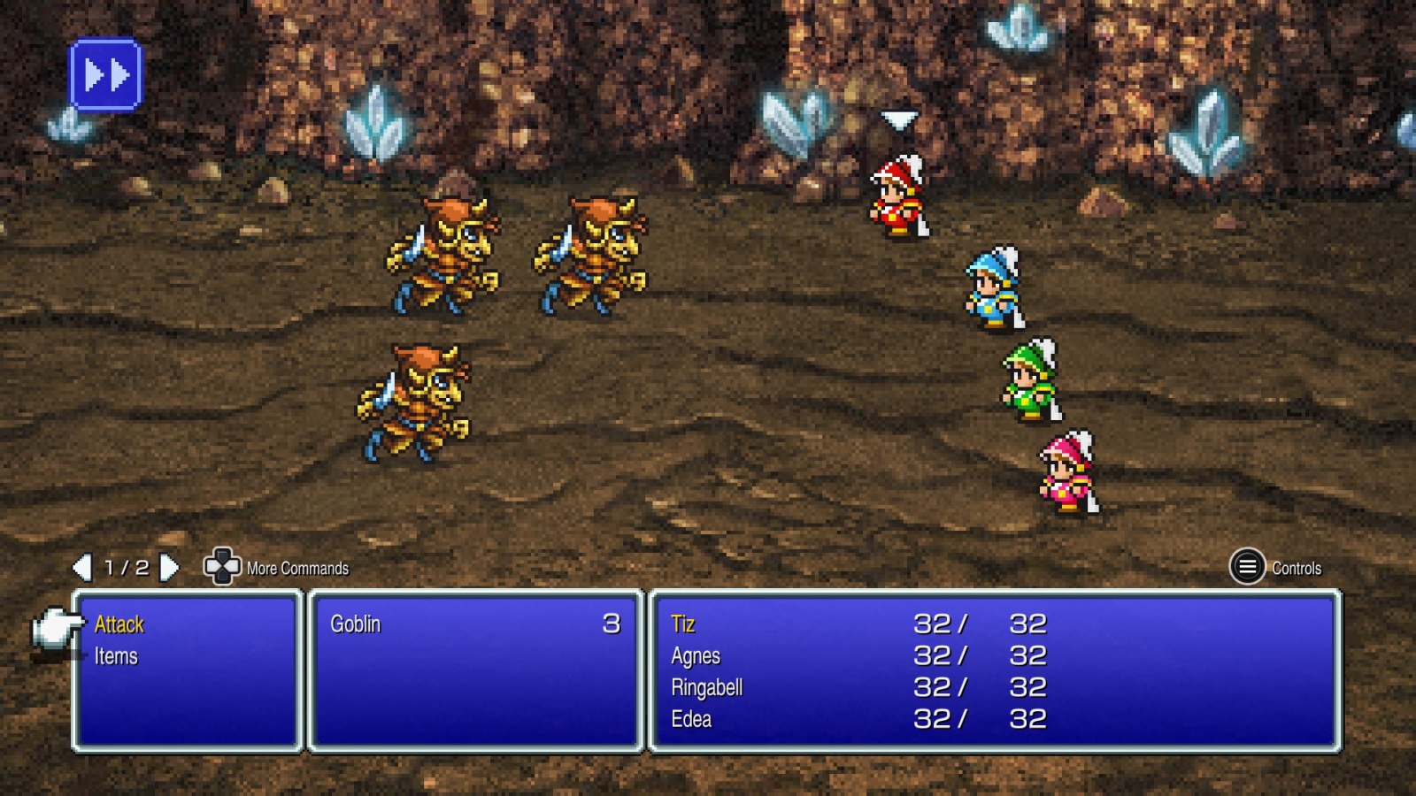 In my short time with the game, I found it to be much easier than the original version; I was able to defeat the Garland and cross the bridge within an hour or so. This may be due to the battles being much, much faster now or the fact that characters will automatically switch targets if theirs has already been defeated. Don’t get me wrong, this is still an NES RPG like Dragon Quest or EarthBound Beginnings, complete with gameplay made mostly of grinding, but that experience has been smoothed out so it feels a lot better.