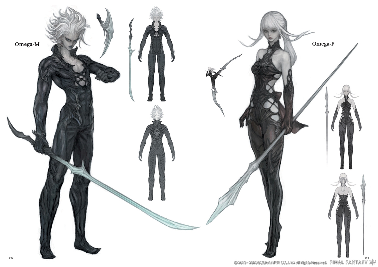Western Memories covers the base expansion, starting off with some beautiful key art and concepts for Lyse, Alphinaud, and Alisaie’s new designs as well as Yotsu, Yugiri, Hien, Gosetsu, and more. I especially like Lyse’s two outfits, with their bold red colors yet vastly different aesthetics. The art in this book is much more varied than the others I’ve covered, with artists putting their own style into the characters rather than trying to remain homogenous. It’s not a bad or good thing in and of itself, I enjoy both approaches and it’s nice to see characters in poses that convey their personality or mood.