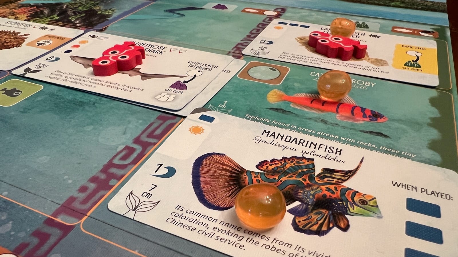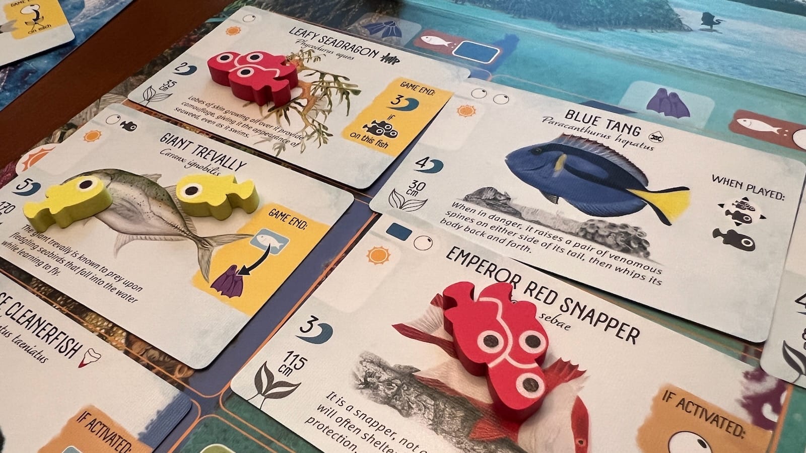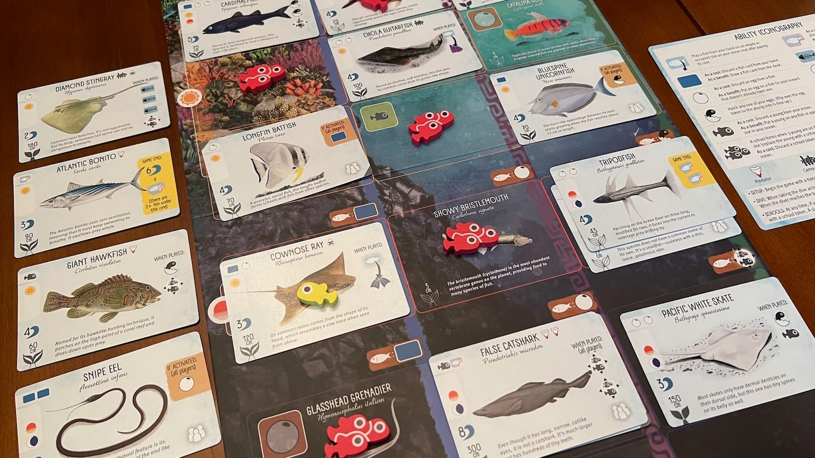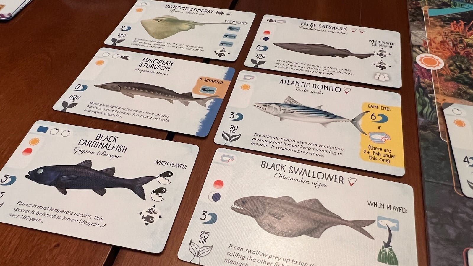 - End game scoring abilities printed on fish
