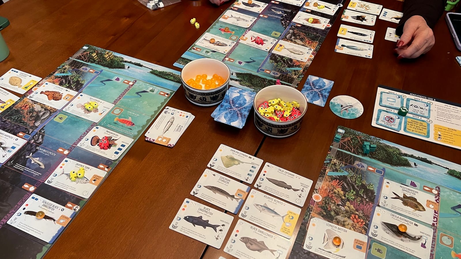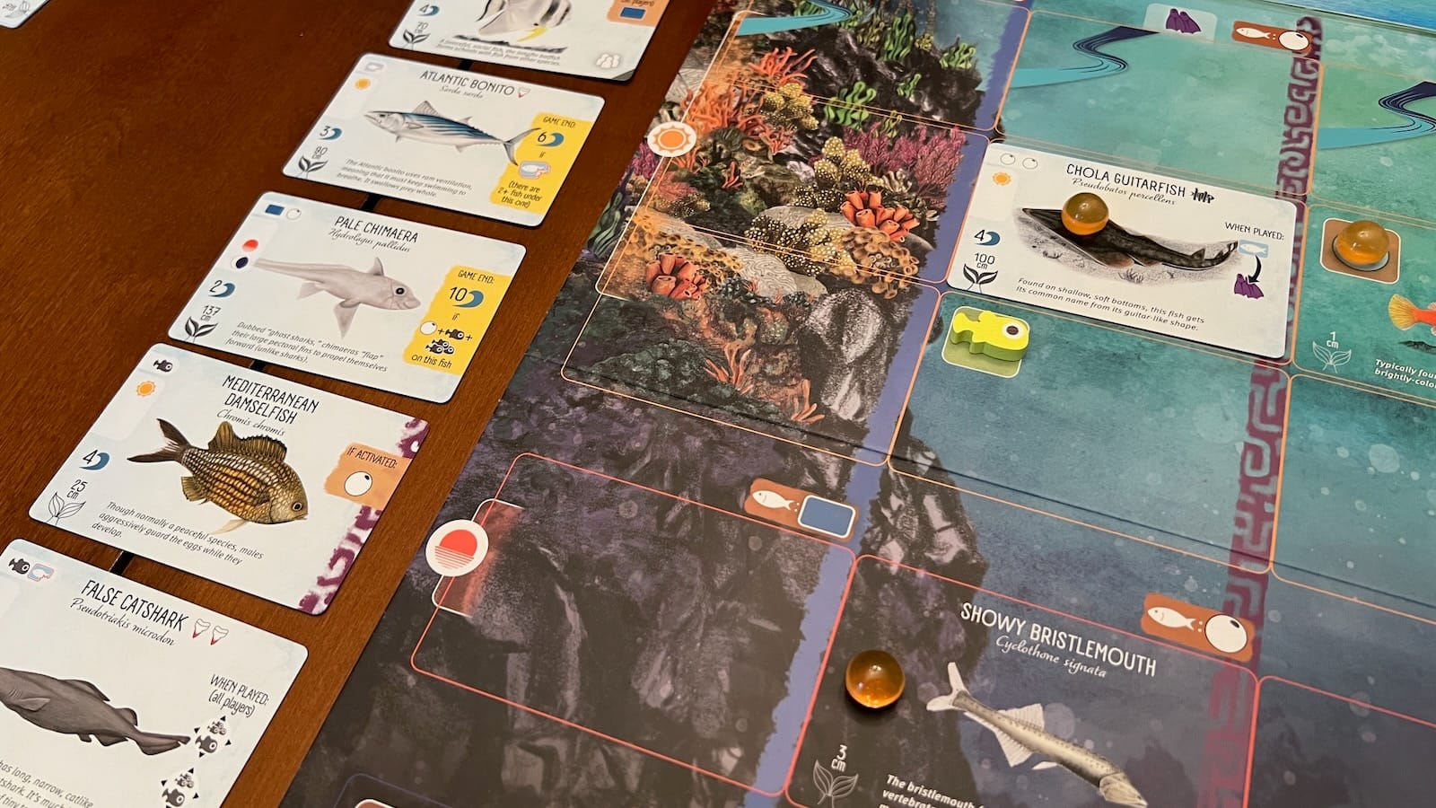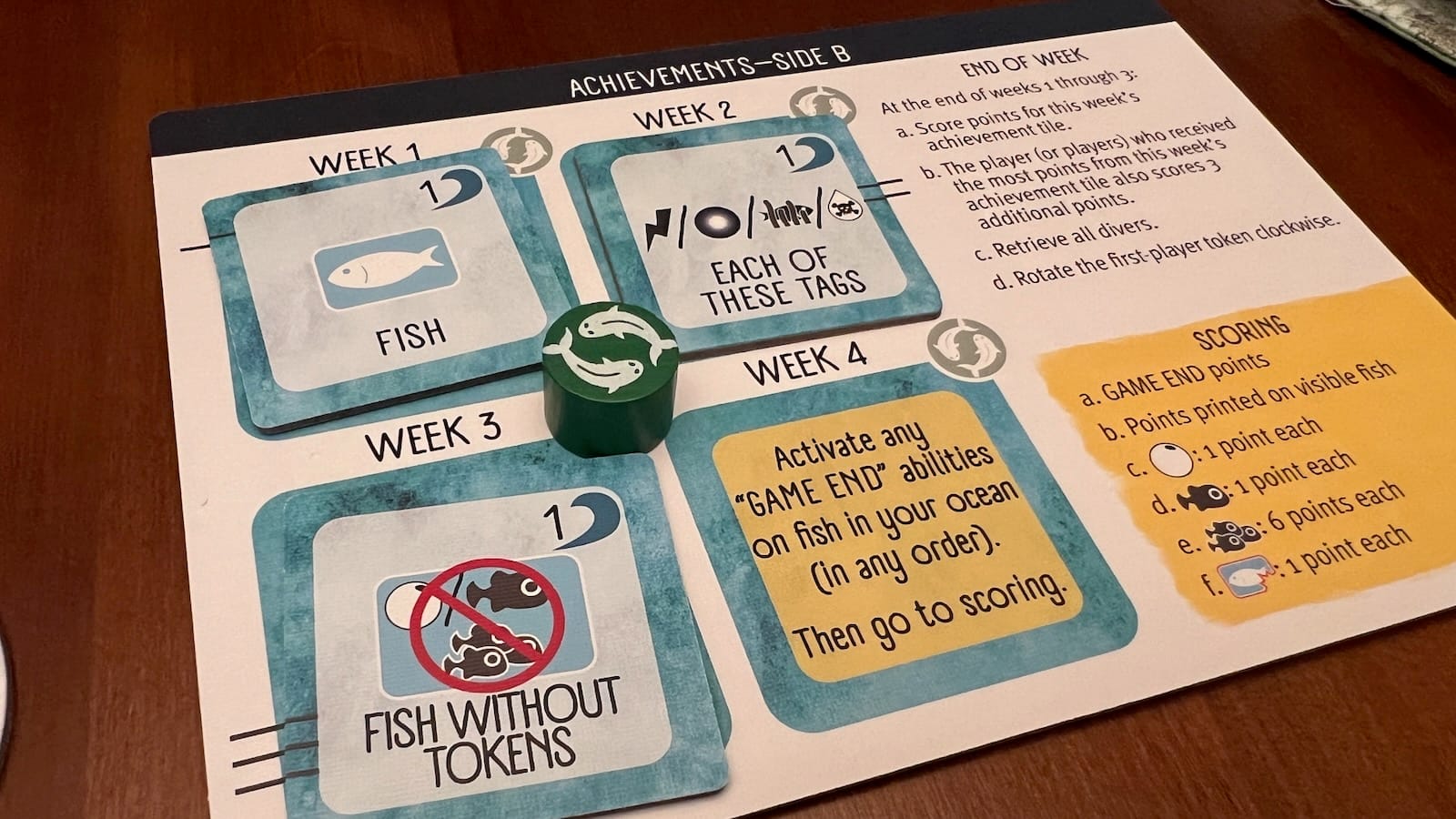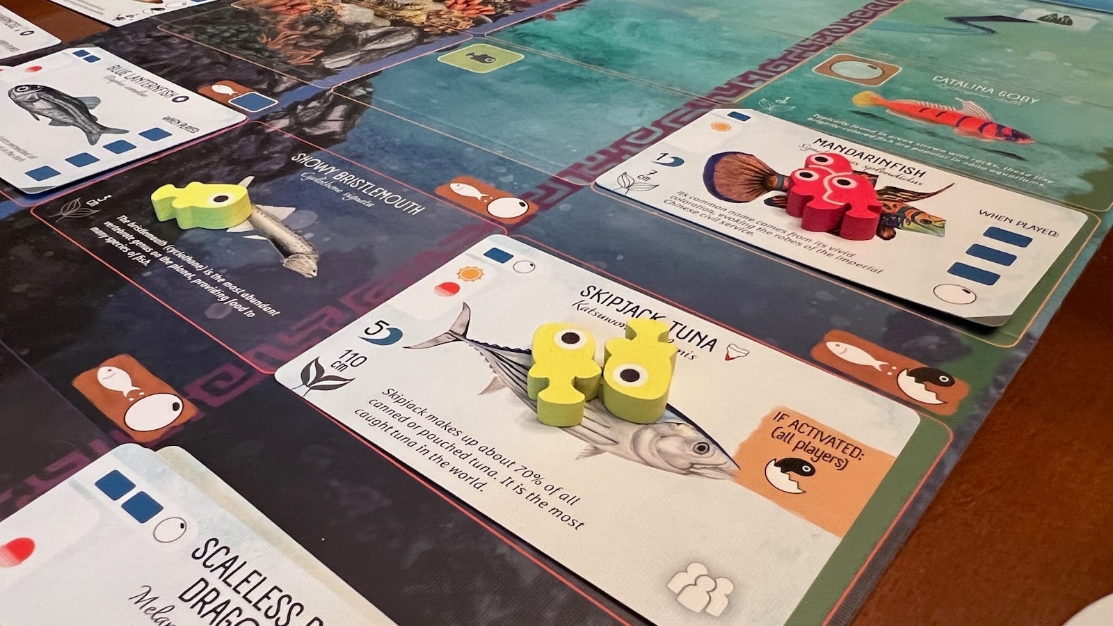 - End game scoring abilities printed on fish