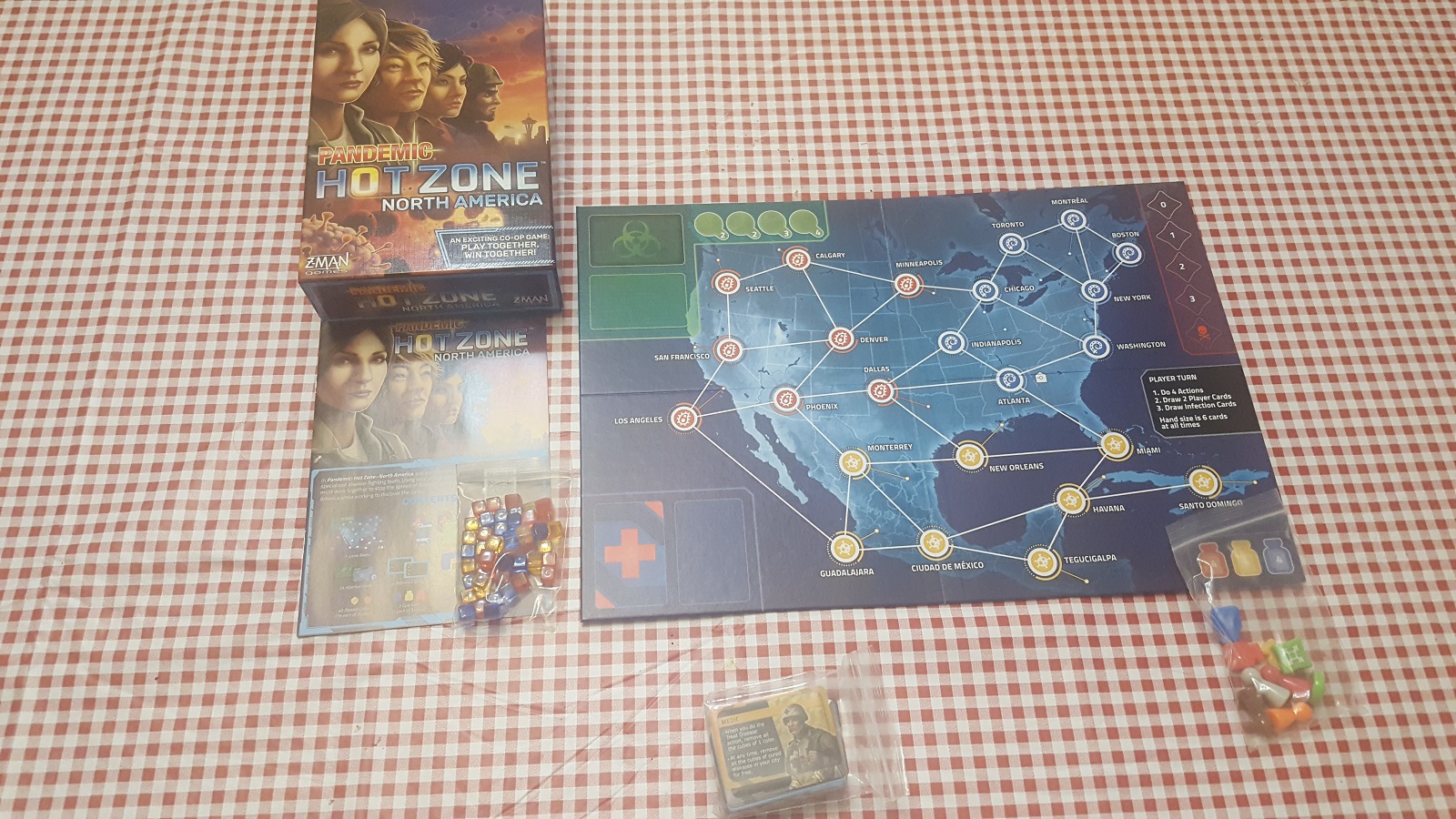 Now the differences of Pandemic: Hot Zone – North America and the original game relate to the accessibility of the product. First off, the game is considerably cheaper than the original (retailing at $19.99), and comes in compact packaging. The box is well made, and the components are relatively smaller than their base game counterparts (I don’t have a personal copy of the original game, but I’ve played it enough times with friends to compare the size). I love how portable Hot Zone is and will definitely lug it around to introduce my newer friends to the game. I love the updated art, and the cards have a great feel to them; while smaller, they are clearly readable, and have a durable backing that will survive multiple playthroughs.