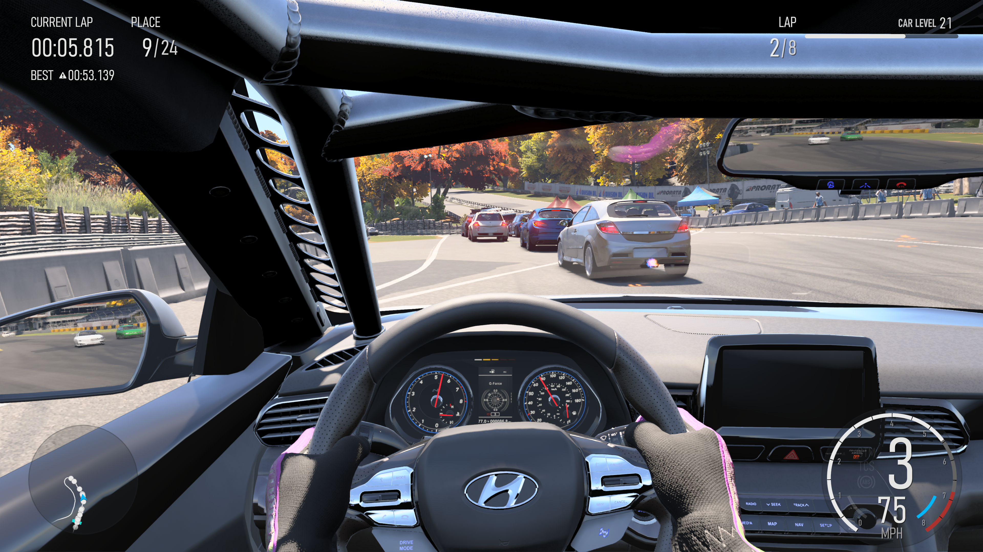 There are 20 completely rebuilt tracks to race on, each with multiple layouts that present different challenges and opportunities. You’ll race during different times of the day and in different weather conditions, like rain, patchy fog, and blazing sunshine. You could do your practice laps during the day with fog covering parts of the tracks, and then your actual race could end up being at night with completely clear conditions. You could also have practice laps in the morning with the sun directly in your eyes, making it nearly impossible to see the track in front of you, and then rain when it’s time to race. These weather conditions not only impact your visibility, but also the driving conditions themselves. Taking extra care at each turn can save you from hydroplaning when it’s raining.