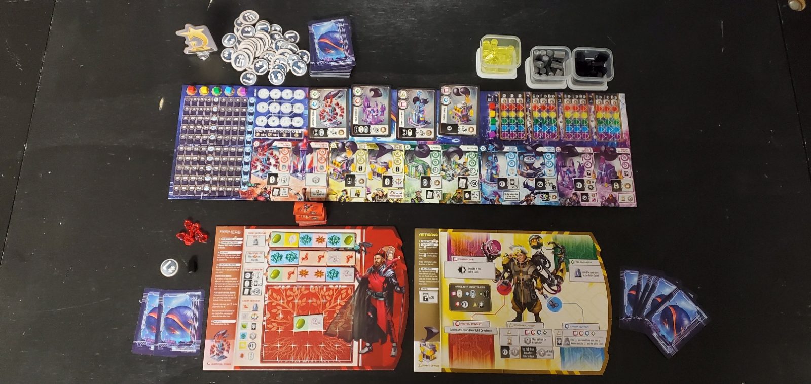 My biggest criticism of the game probably lies with the art direction and component design. While visually striking, the art is very bright, loud, and busy. The most common issue players had was trying to digest and parse everything they were seeing on the boards and even on the cards. (The player rule sheets were a notable exception.)