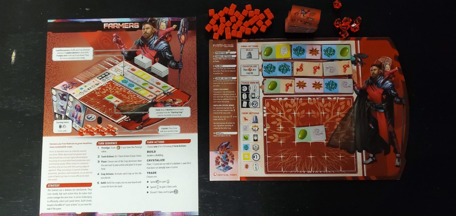 More than any other faction, I received the feedback that the Farmers were overpowered. The only two blowouts (100+ VP) I’ve seen have both been performed by players playing the Farmer faction. However, I think that might have been more due to the combination of the quality of the players playing the faction, the player count, and the focus of the players in the game. Out of 5 games where the Farmers were played, 2 were blow outs (100+ VP win), 2 were busts (last place), and 1 had the farmer end up in the middle.