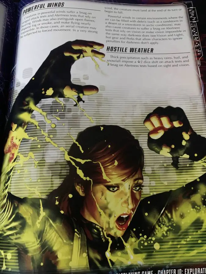 What stood out to me was the rules for Extreme Conditions. They have everything in here from extreme cold to hostile weather in general. I can’t stress enough how simple these rules are. They’re easy to digest and work into your game without reading 20 paragraphs of explanation.