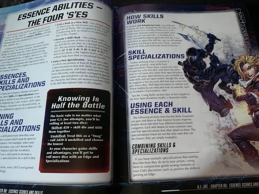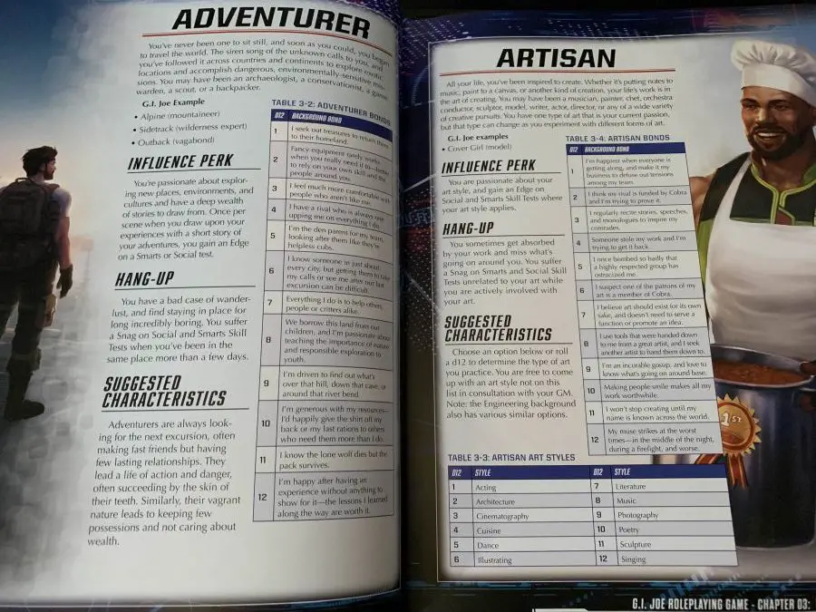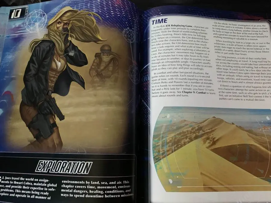 Inside this book, you’ll find 13 chapters. They cover everything from the introduction to advice for running the game, and it’s presented in a nice format. There is a specific flow to the book that I appreciate. For example, everything you need to create your character is sequential. You’re also not being hit with a ton of G.I. Joe lore: I appreciate this because it makes introducing new players to the game easier.