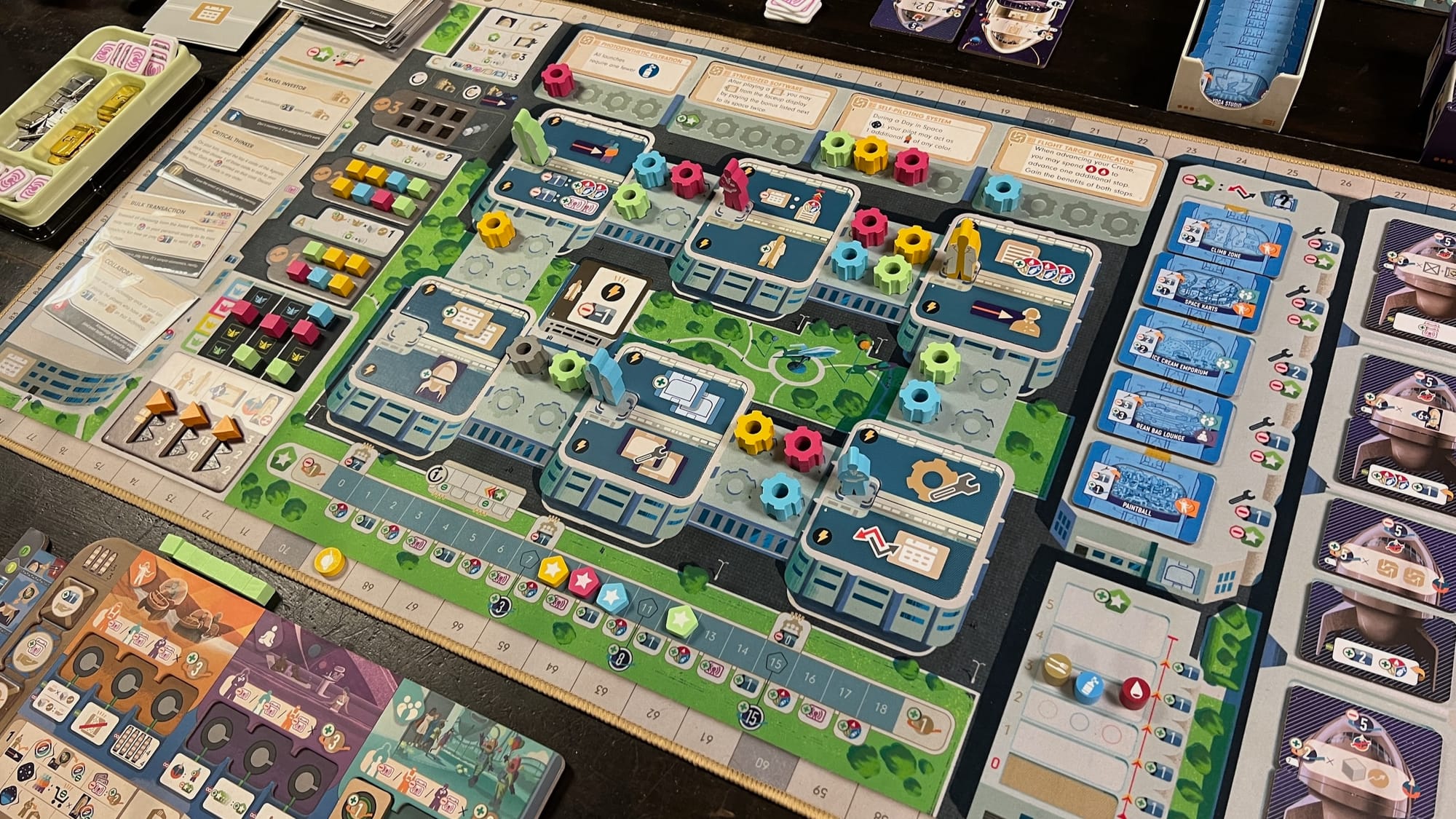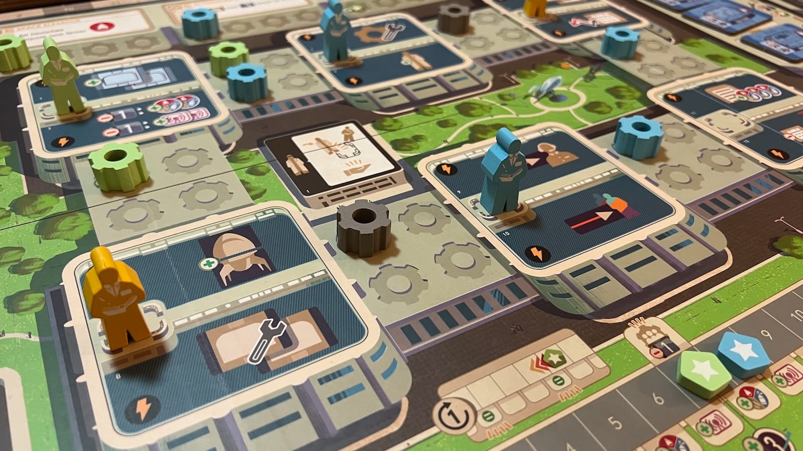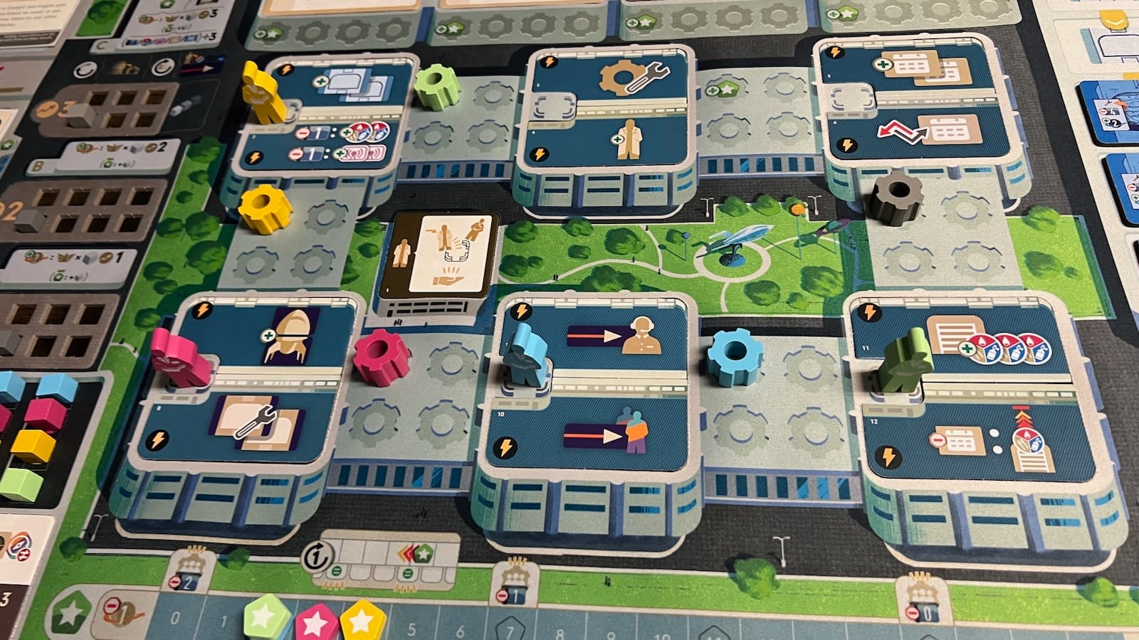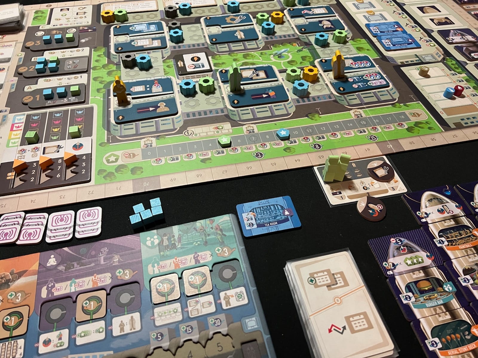 The two player variation played just as well as the 3-4 player counts. The addition of the extra player pieces helped give the feel of a larger player count and allowed for some bumping of workers. Without the changes, there would be a ton of meetings called versus the natural bumping that happens with more players.