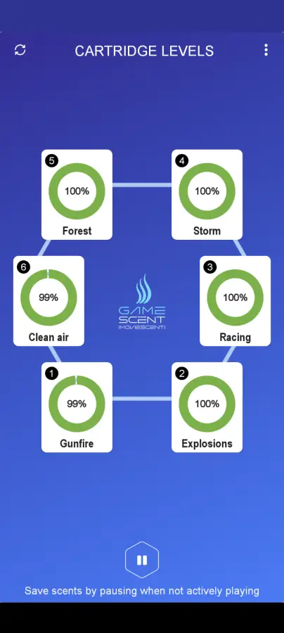 While I was able to get things going eventually, the app itself doesn’t always tell you things are working correctly. I felt like my audio was running into the adapter the first time, but unless you’re checking it via the audio out you really don’t know. This is where the HDMI comes in handy, because if your audio isn’t coming through the TV, you know there’s an issue. For the adapter and atomizer, you do get a red dot denoting if it’s not working, but beyond that you simply have six gauges showing you how much scent you have left (which you can press to spray the scent manually), and a pause button to stop the spraying when you aren’t playing.