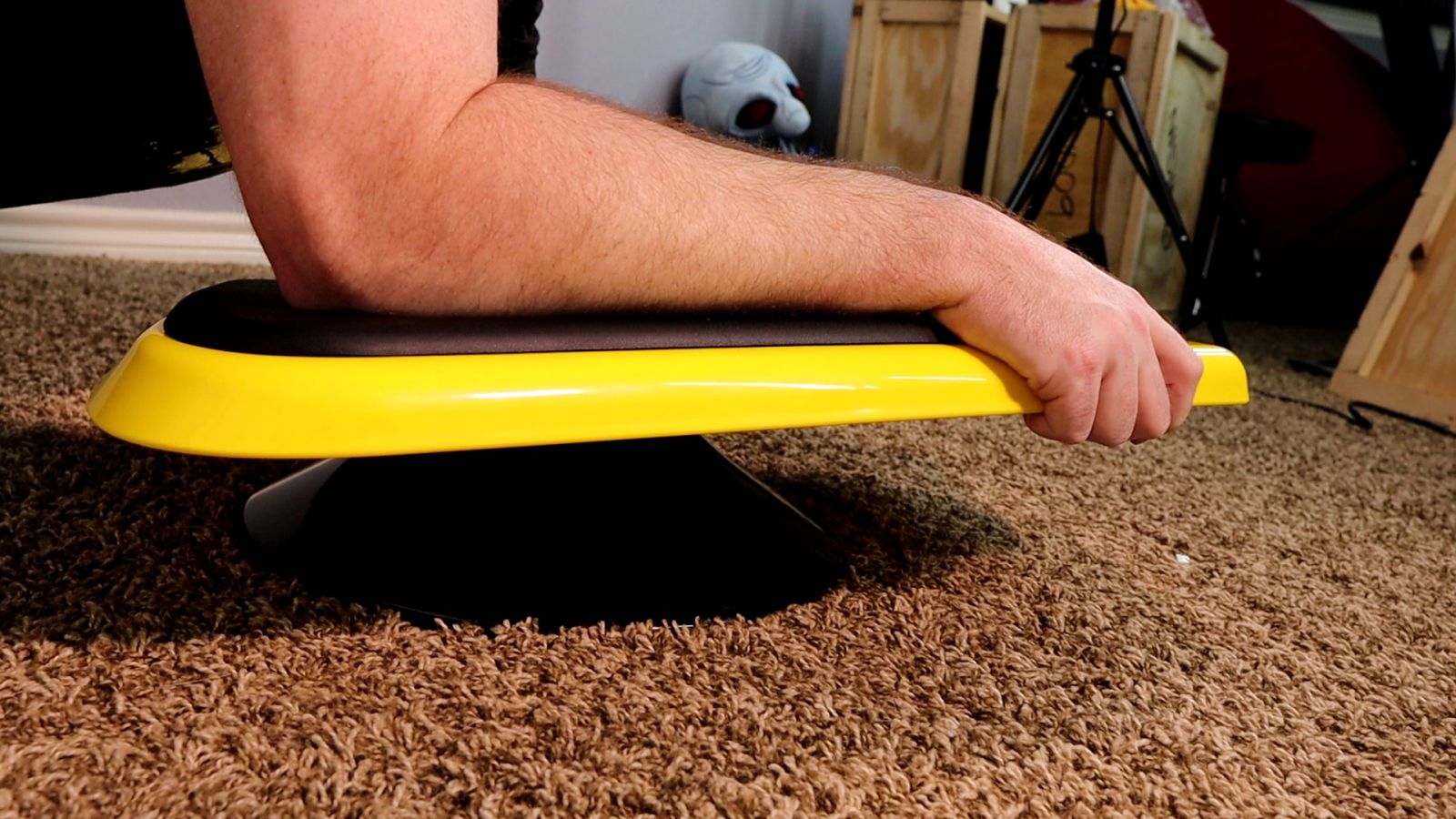 The Stealth Workout Board comes in three different models — Yellow (“Plankster”), Orange (“Personal”), and Green (“Pro”). The unit I am using is the Yellow model, though the primary difference between these three models is how much of the unit is covered in foam, and the overall size. The Plankster is 22” while the Personal and Pro are 26”, but the Pro uses a different material for the pad, making it more suitable for a multi-use gym — it’s essentially the “commercial” version. As I’ve not tried the others, we’ll focus on the Plankster.