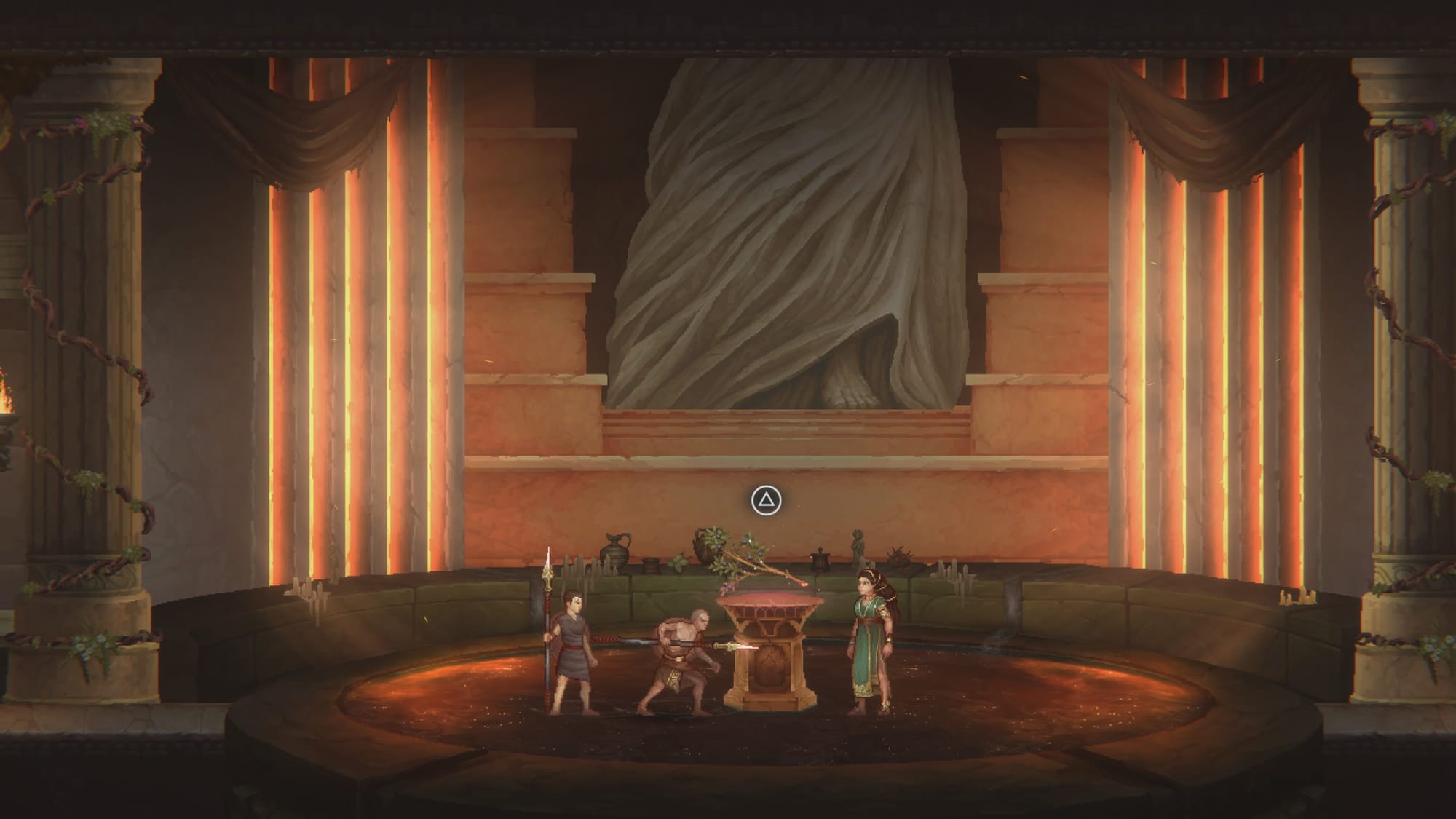 Most of your aforementioned capabilities for opening new pathways come from visiting temples along the way. Each temple contains an item that will help you on your journey, outside of the initial Lycurgus bust you receive from your master at the start of the game. Most of these can be used offensively, bringing new moves and attacks with them. But, their most important function is giving you newfound abilities to get past obstructions.